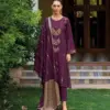 | Top | Pure Viscose Muslin Digital & Foil Print With Fancy Embroidery Work |