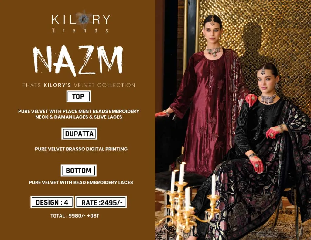 Product Name: Kilory Nazm Velvet Embroidery Work Salwar Kameez Catalog
