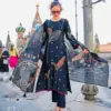 | Top | Pure Viscose Muslin Digital & Foil Print With Fancy Embroidery Work |