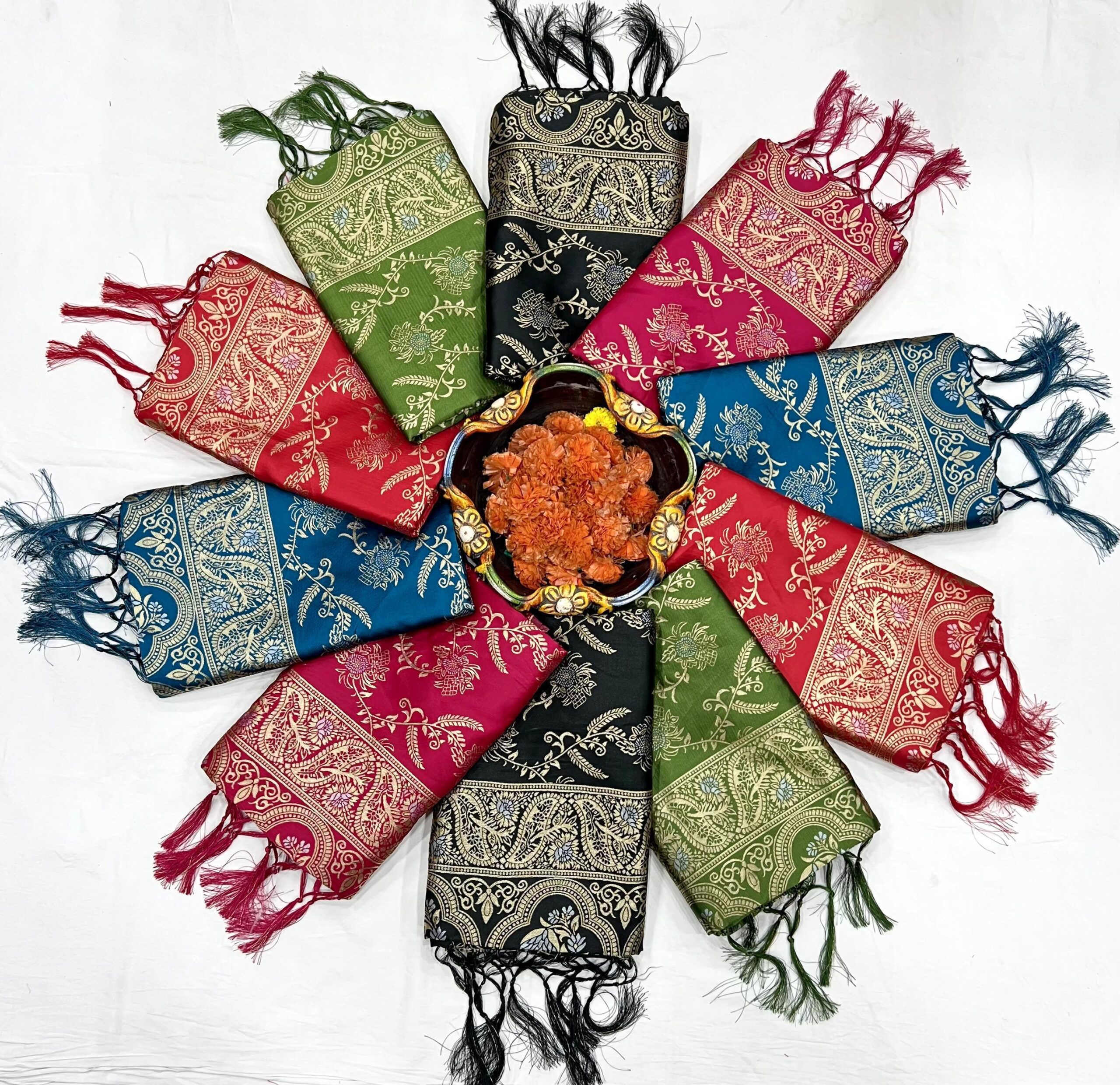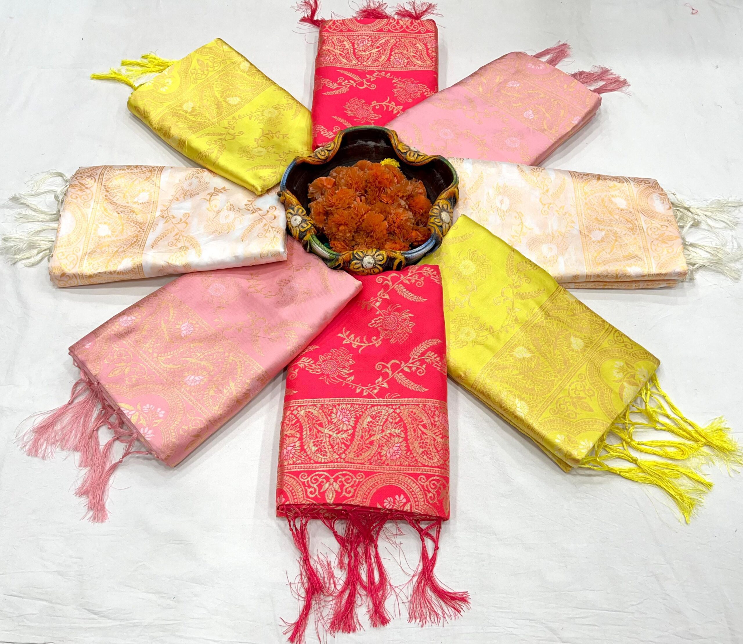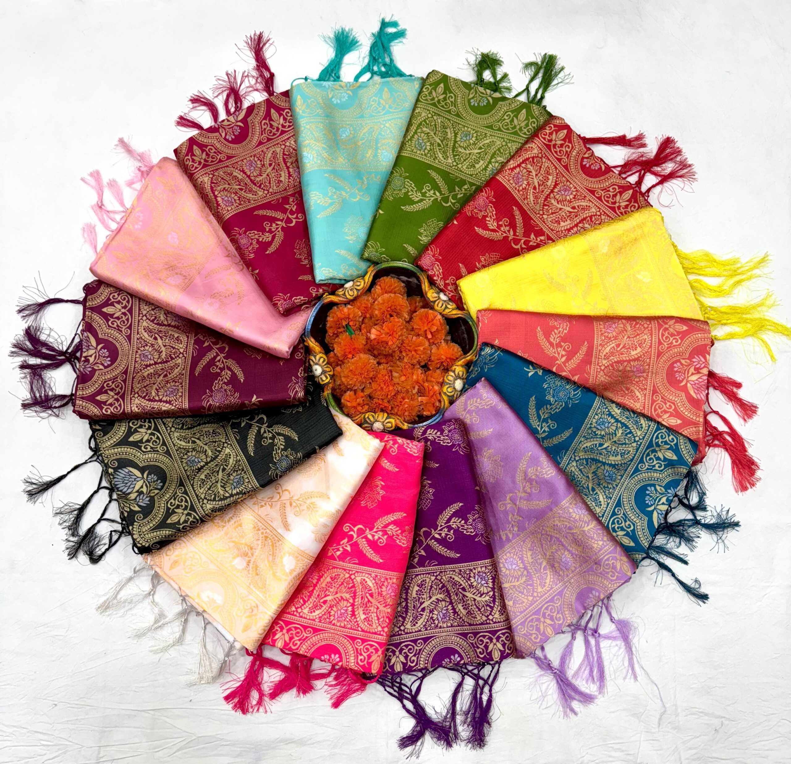KP-R Creation KP-5072 Soft Lichi Silk Saree with Rich Pallu & Brocade Blouse Collection.