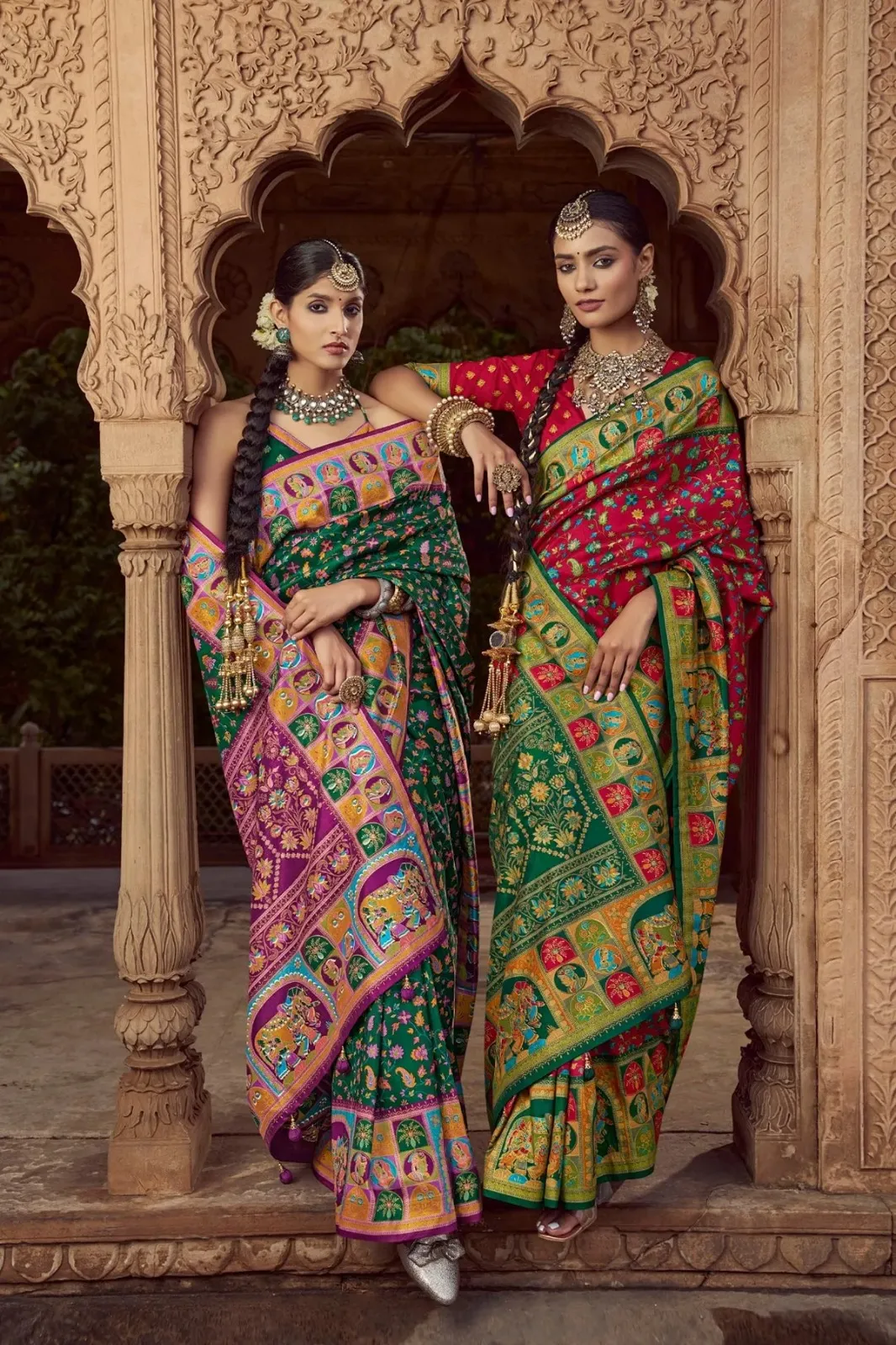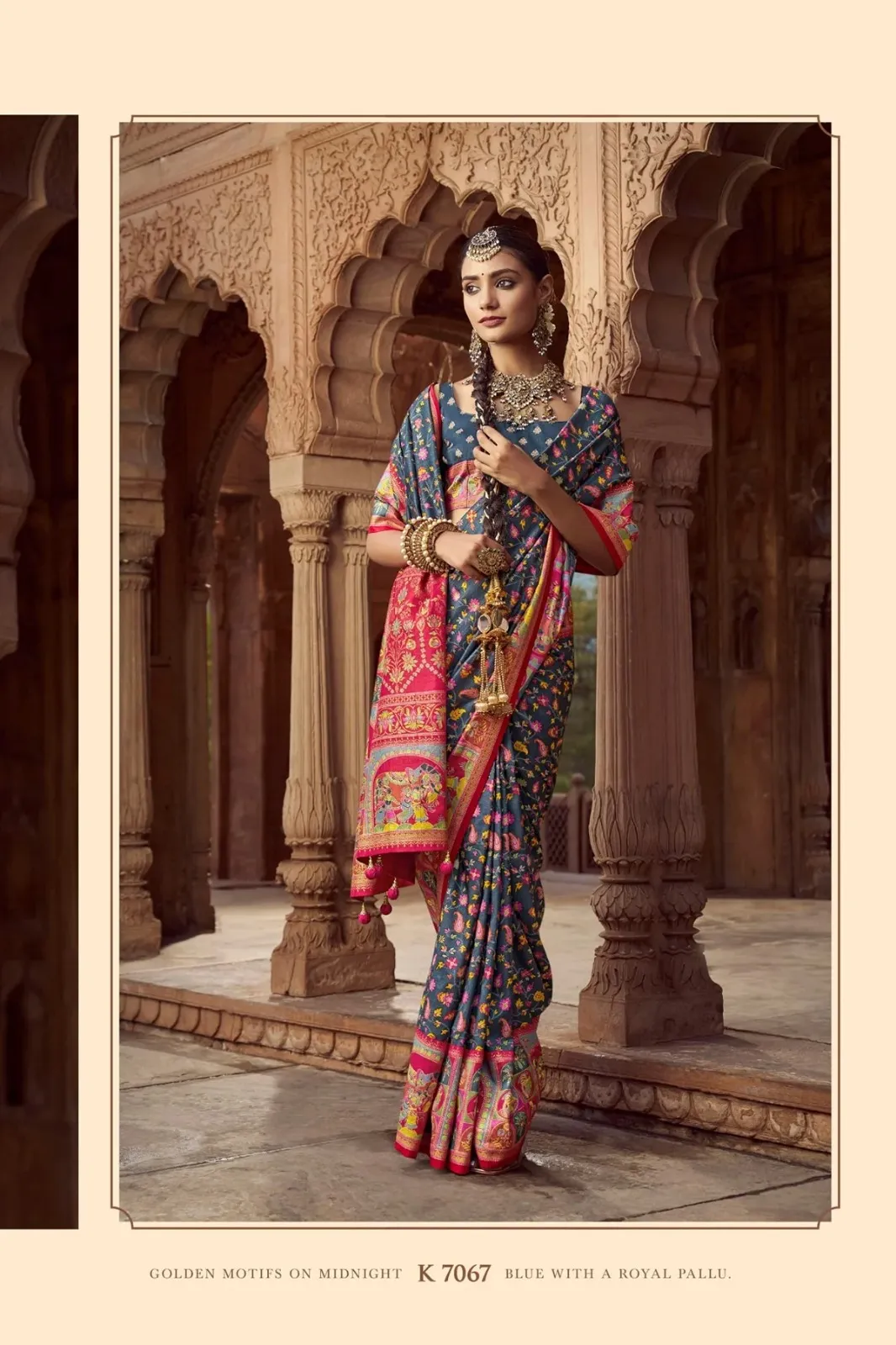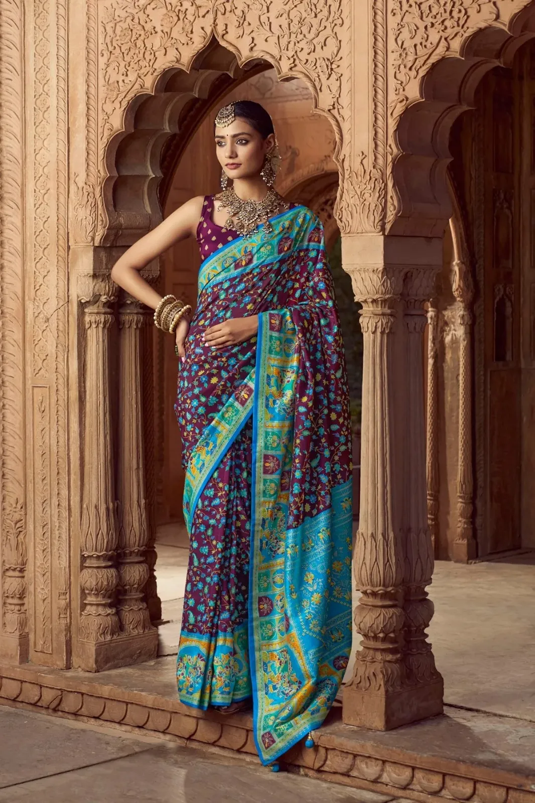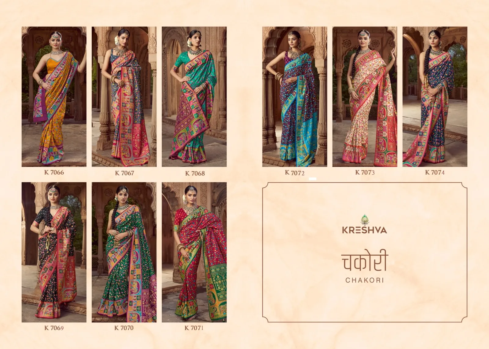 Kreshva Chakori Twill P.V.Silk With Pashmina Print Saree Collection