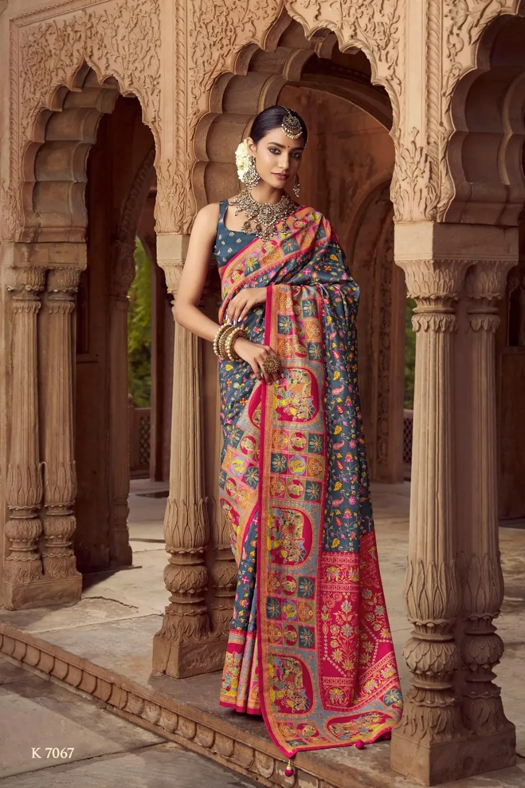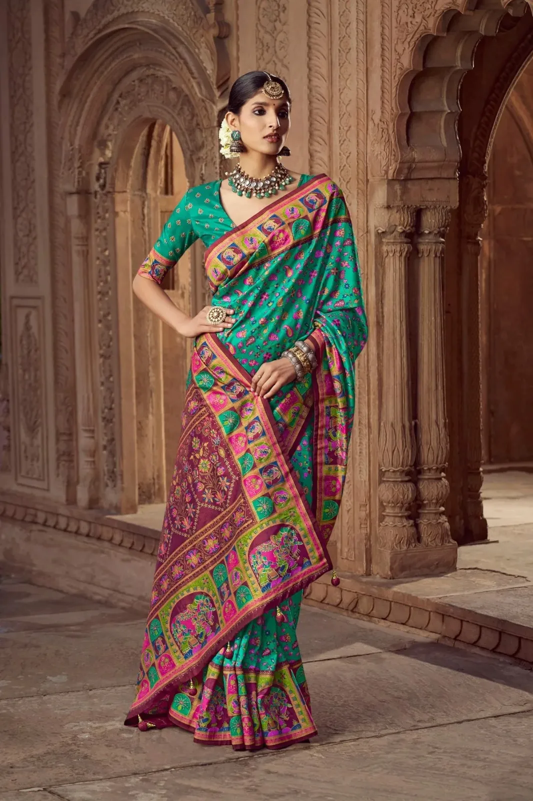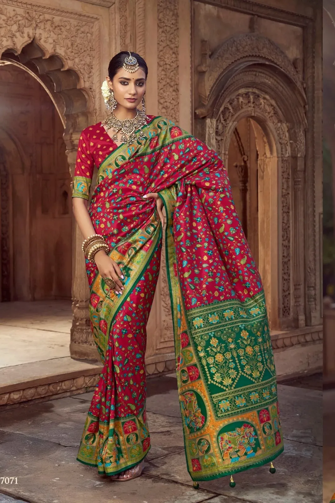 | Saree | High Quality Super 8001 P.V Silk With H.B. Pashmina inspired Luxury Print With Glory Finish |