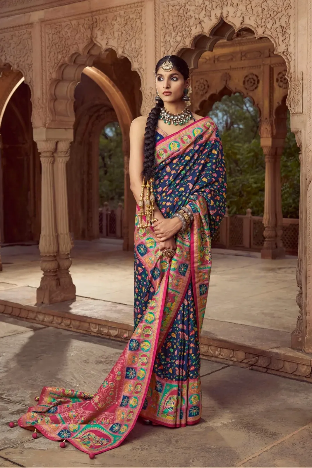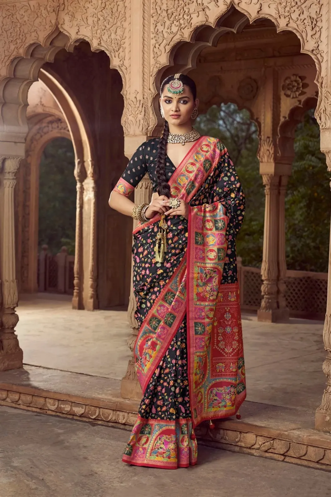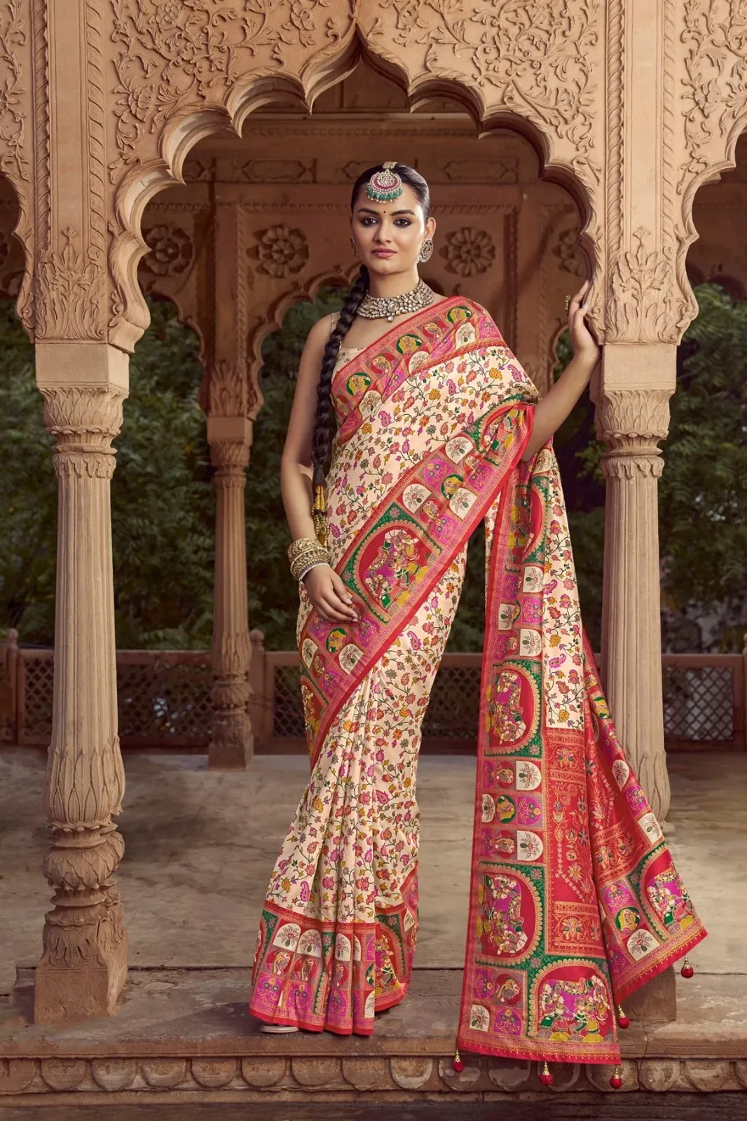 | Saree | High Quality Super 8001 P.V Silk With H.B. Pashmina inspired Luxury Print With Glory Finish |