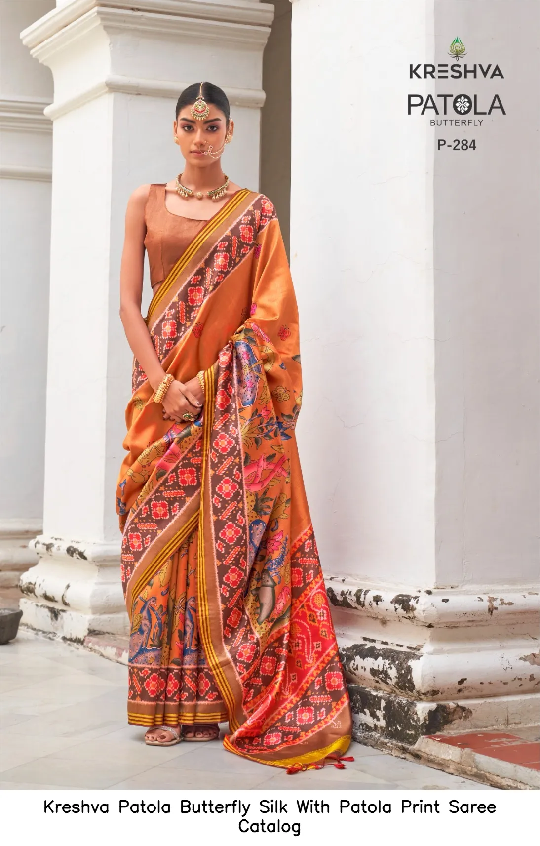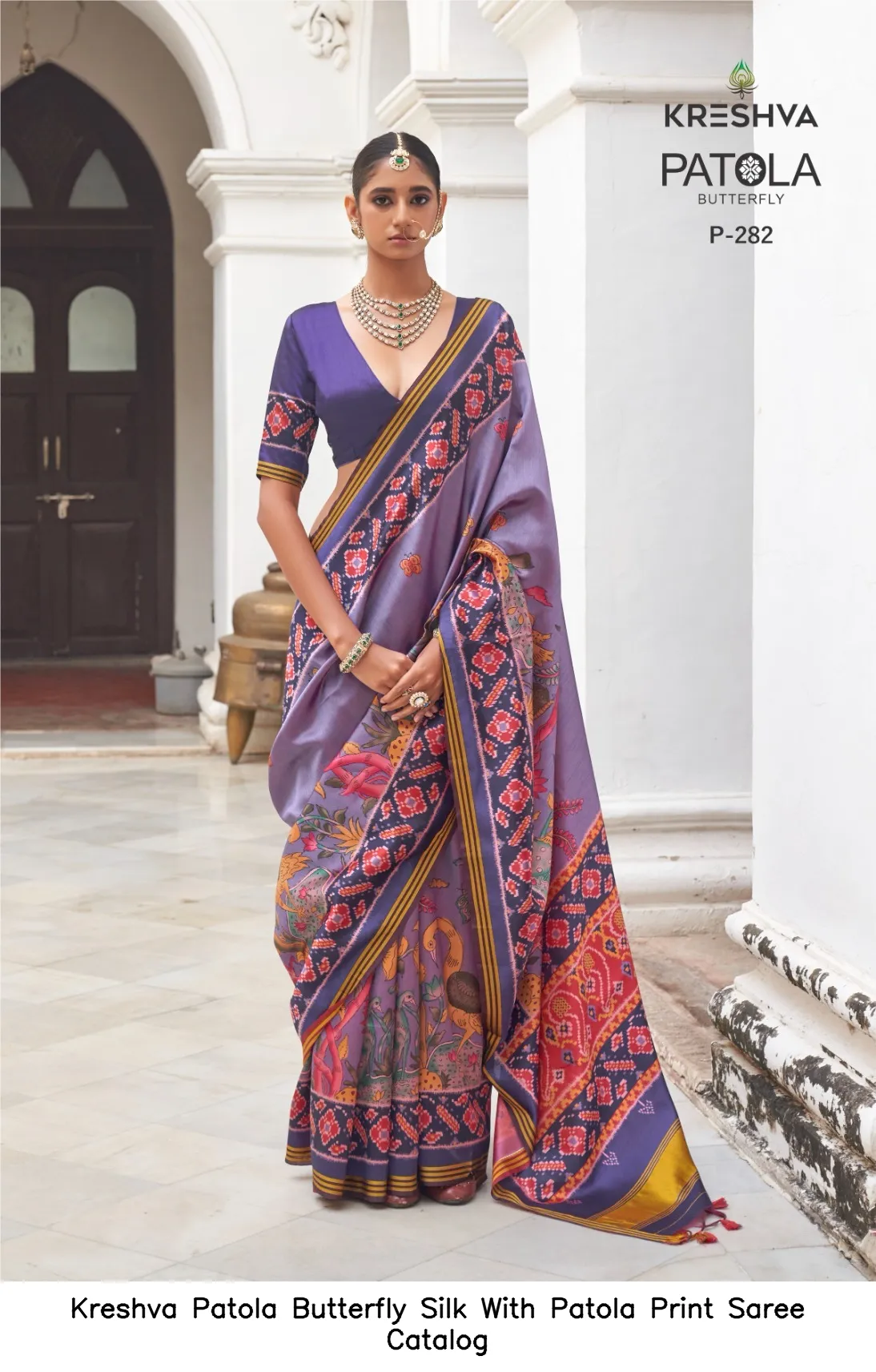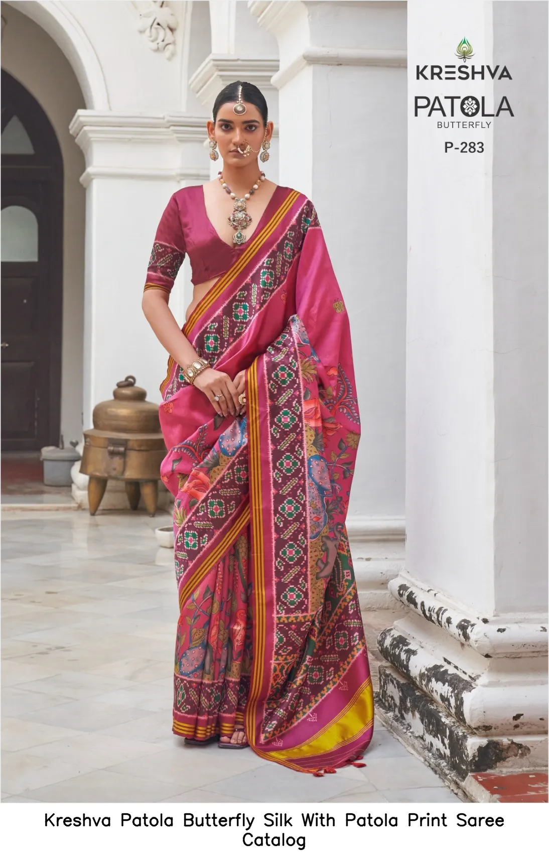 Kreshva Patola Butterfly Silk With Patola Print Saree Catalog