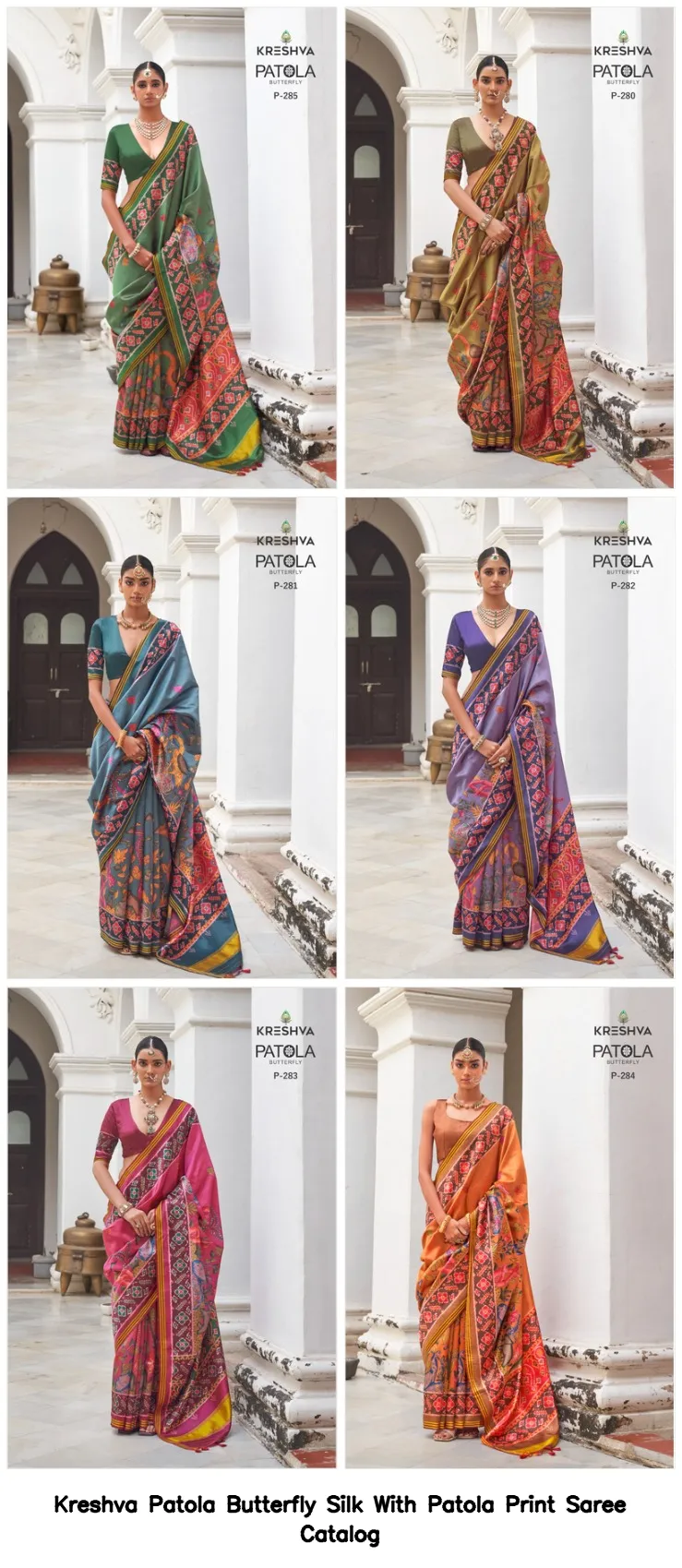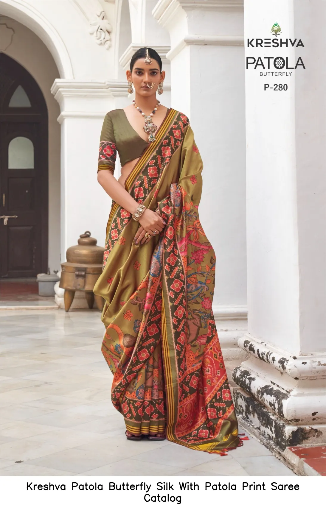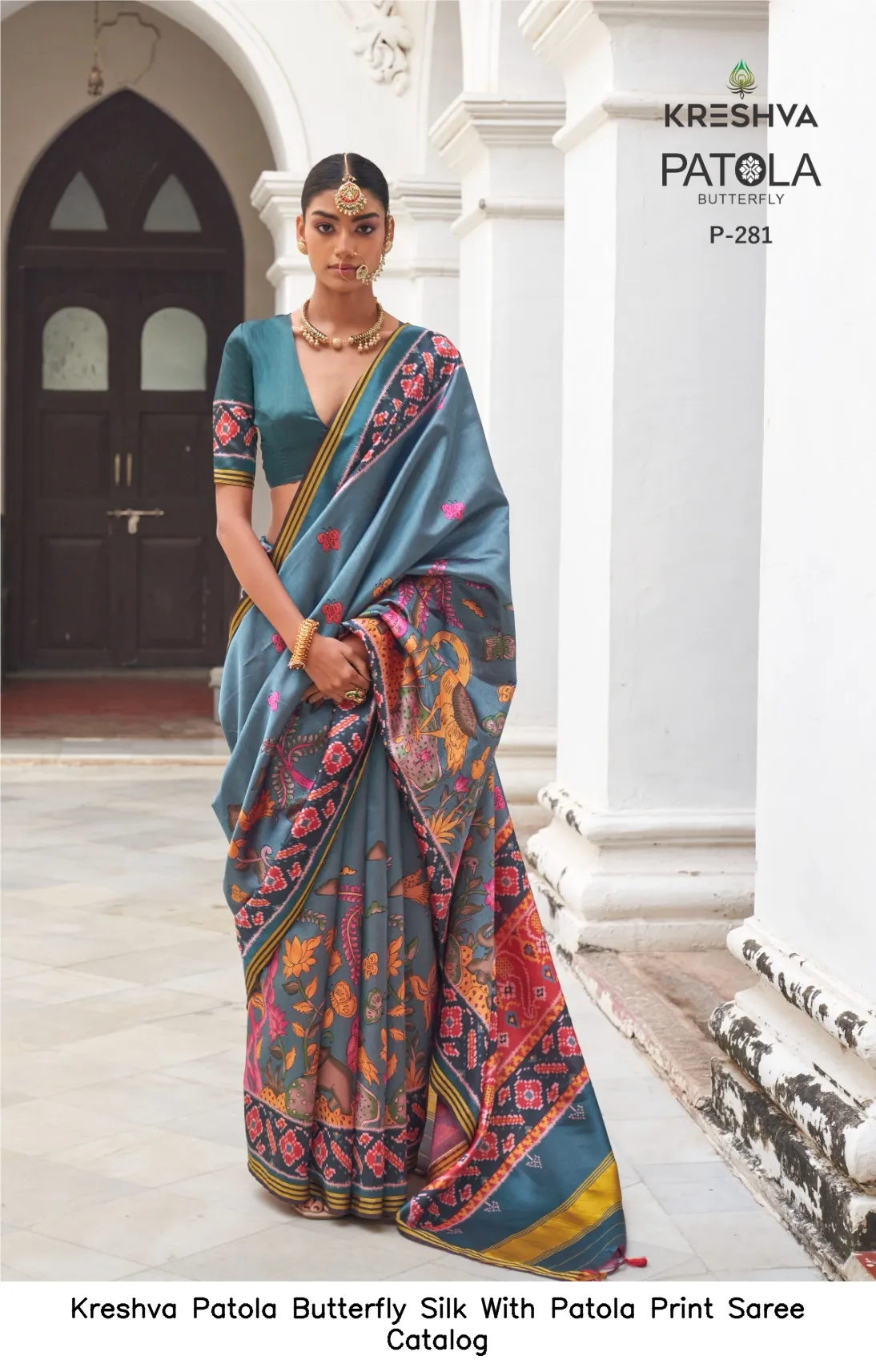 Kreshva Patola Butterfly Silk With Patola Print Saree Catalog