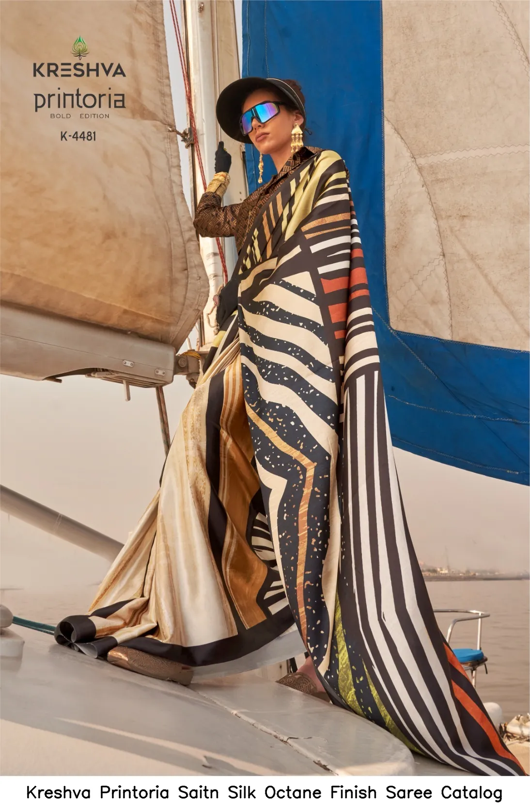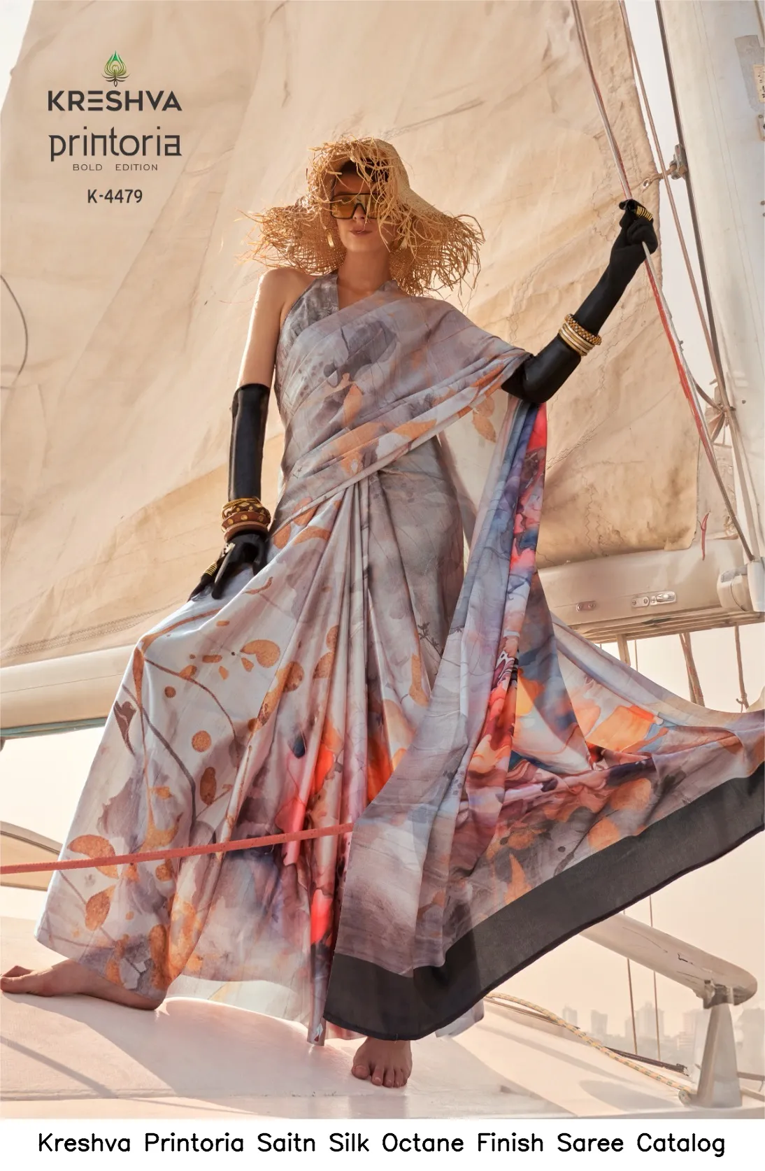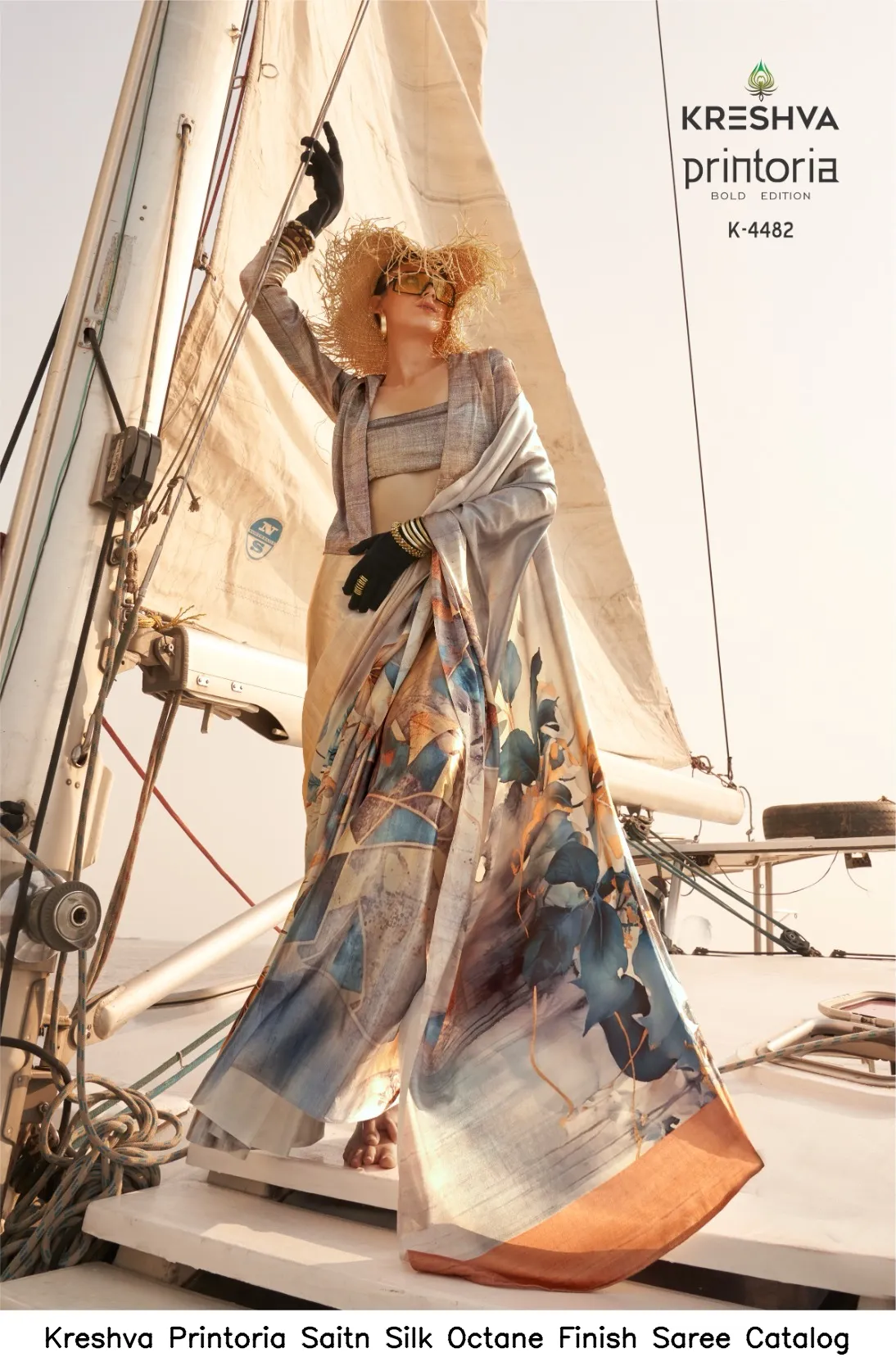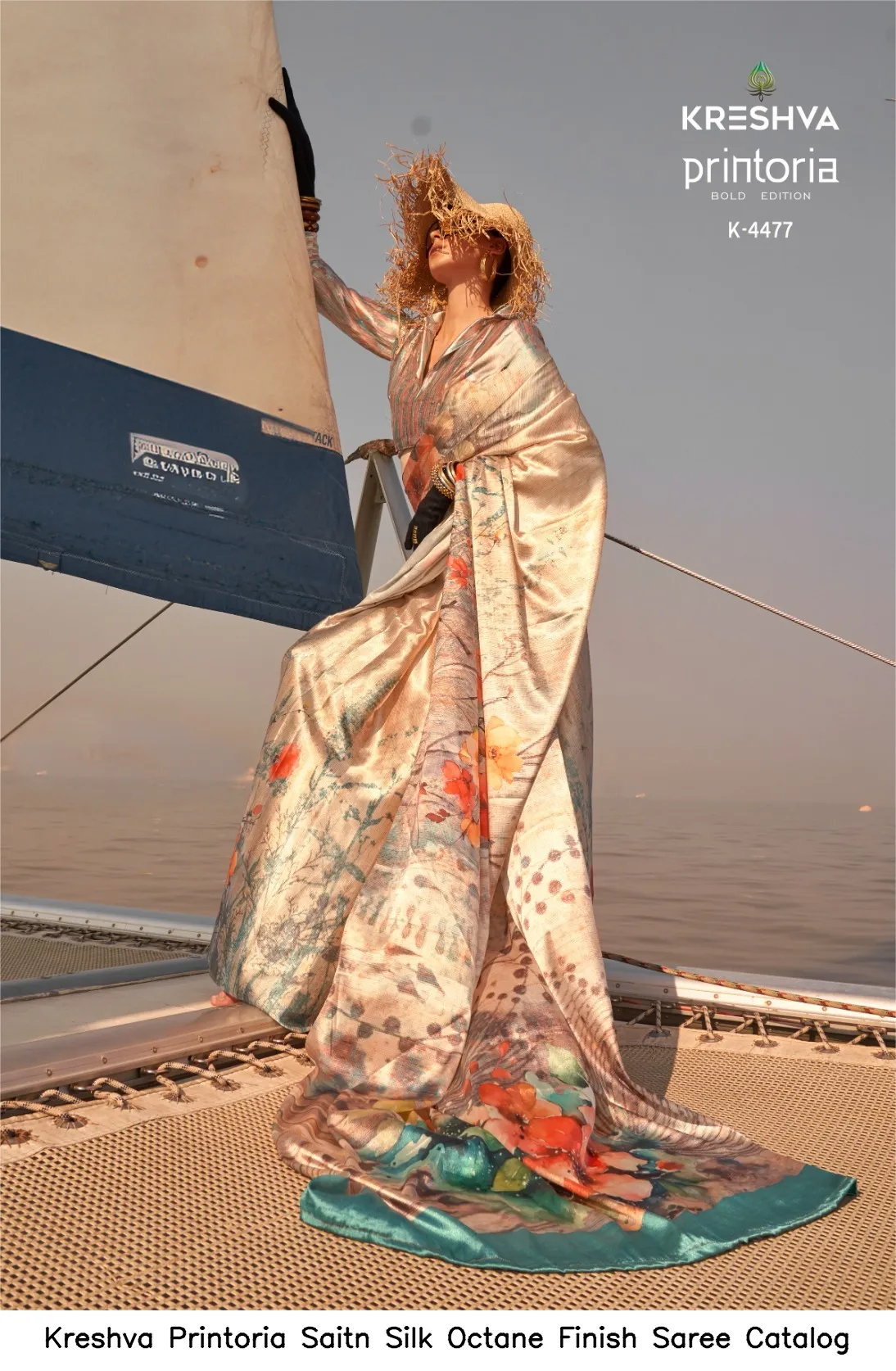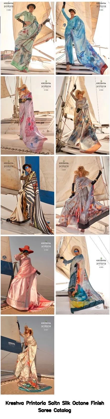 Kreshva Printoria Saitn Silk Octane Finish Saree Catalog
