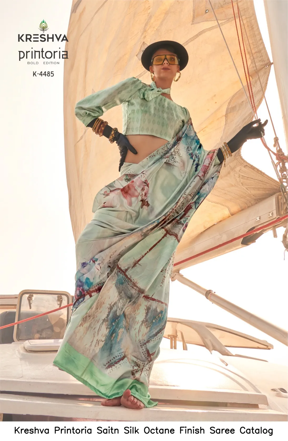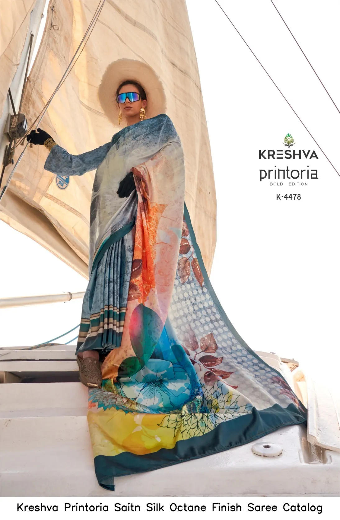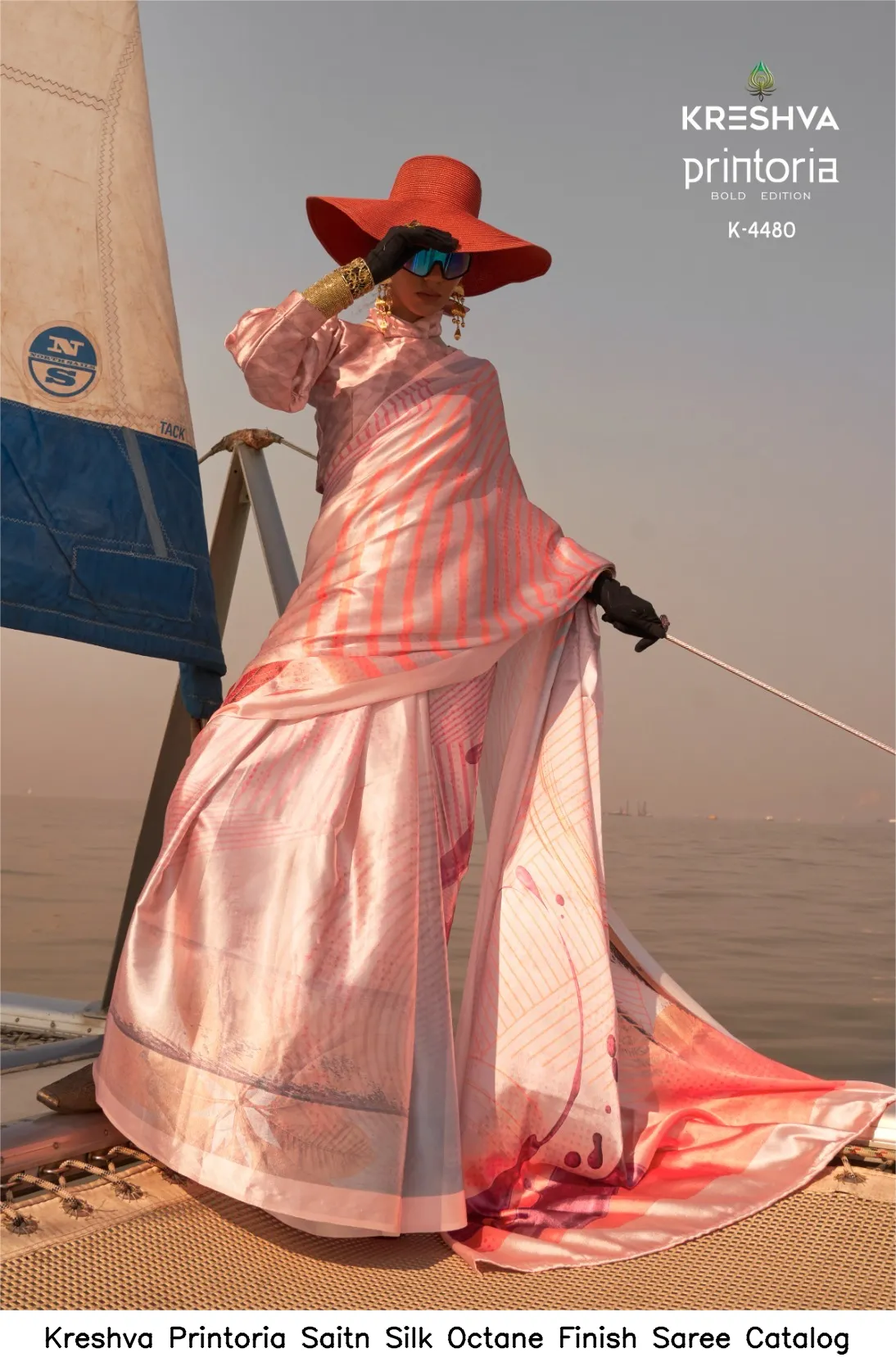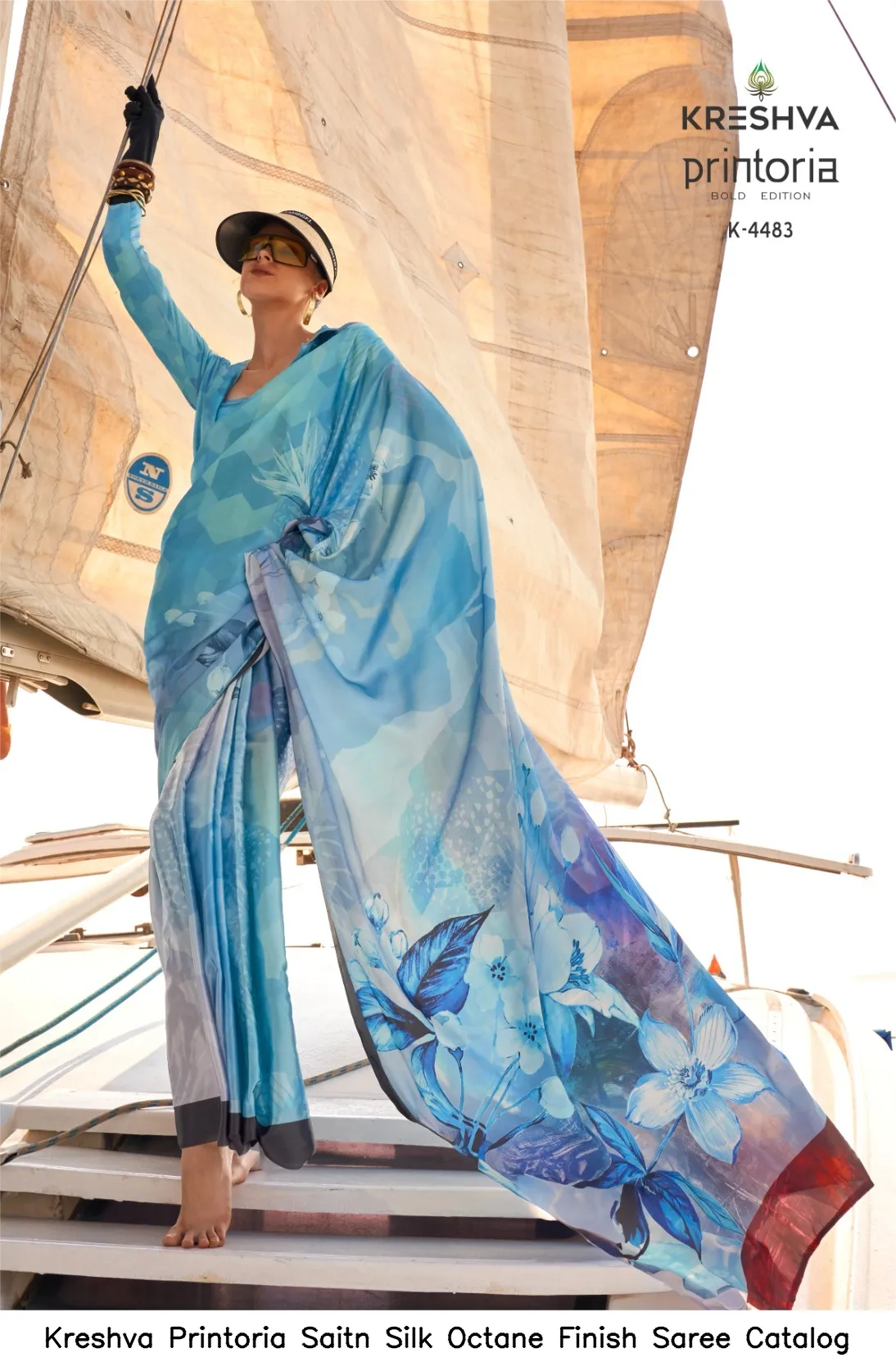 Kreshva Printoria Saitn Silk Octane Finish Saree Catalog