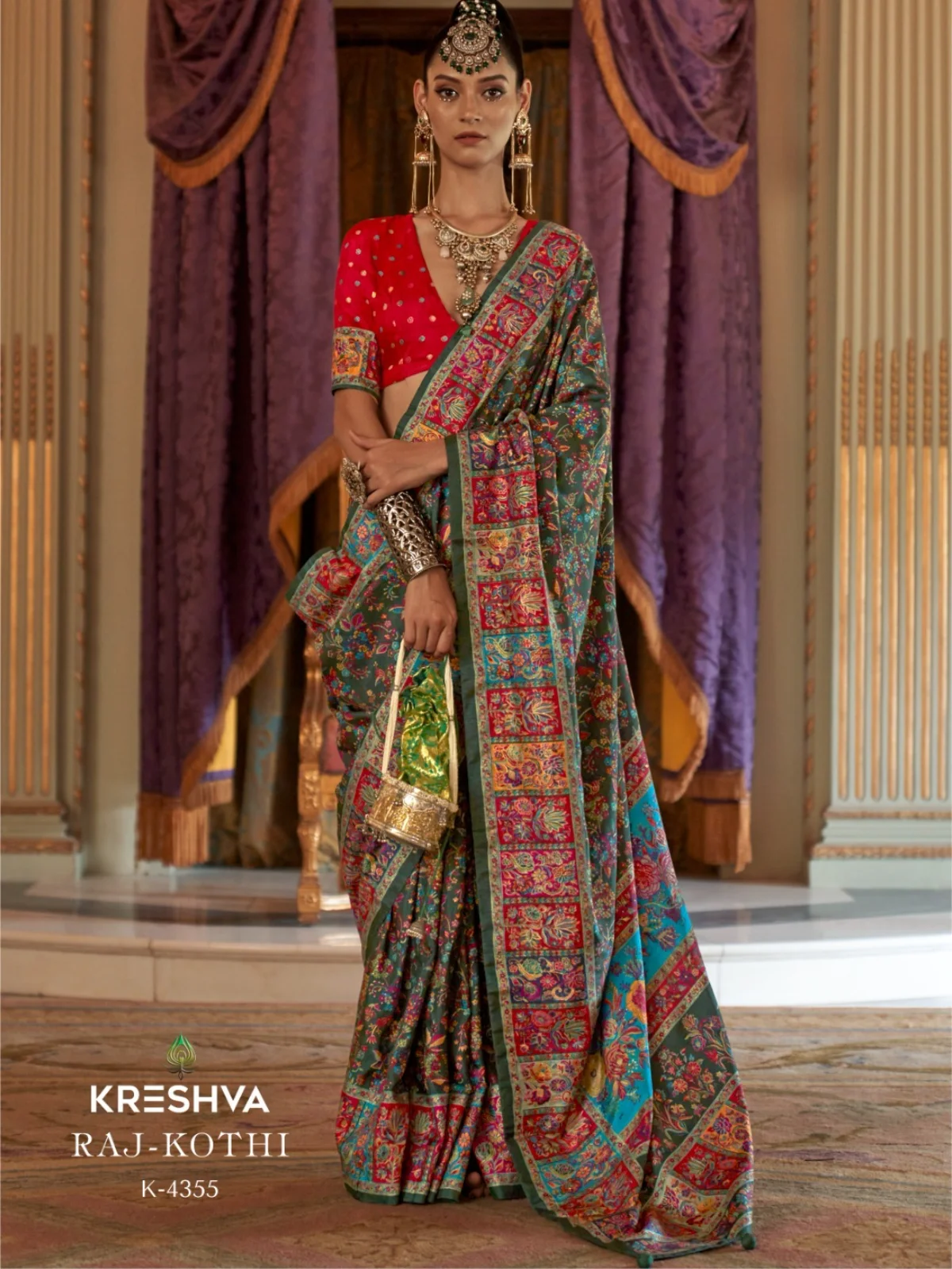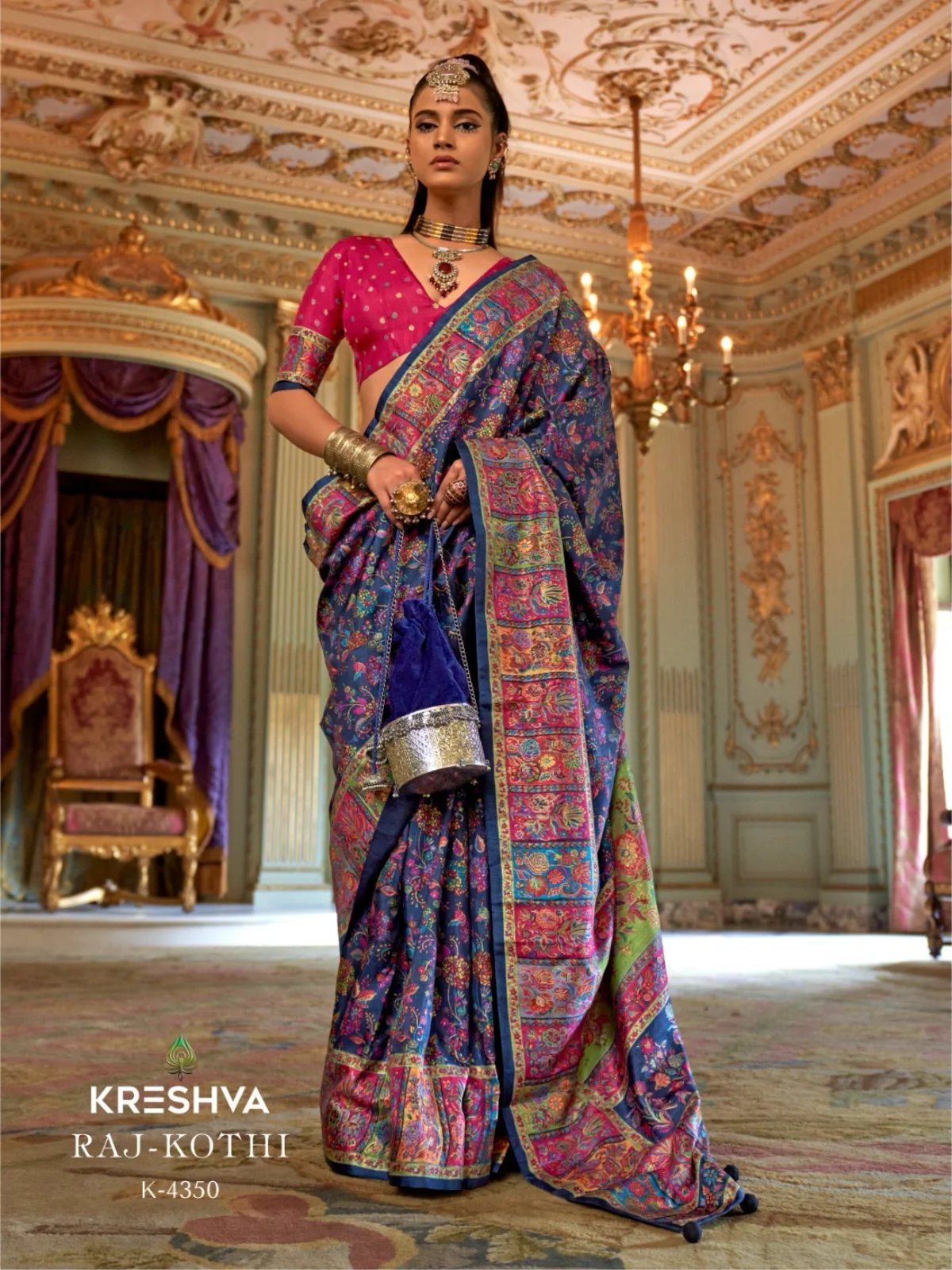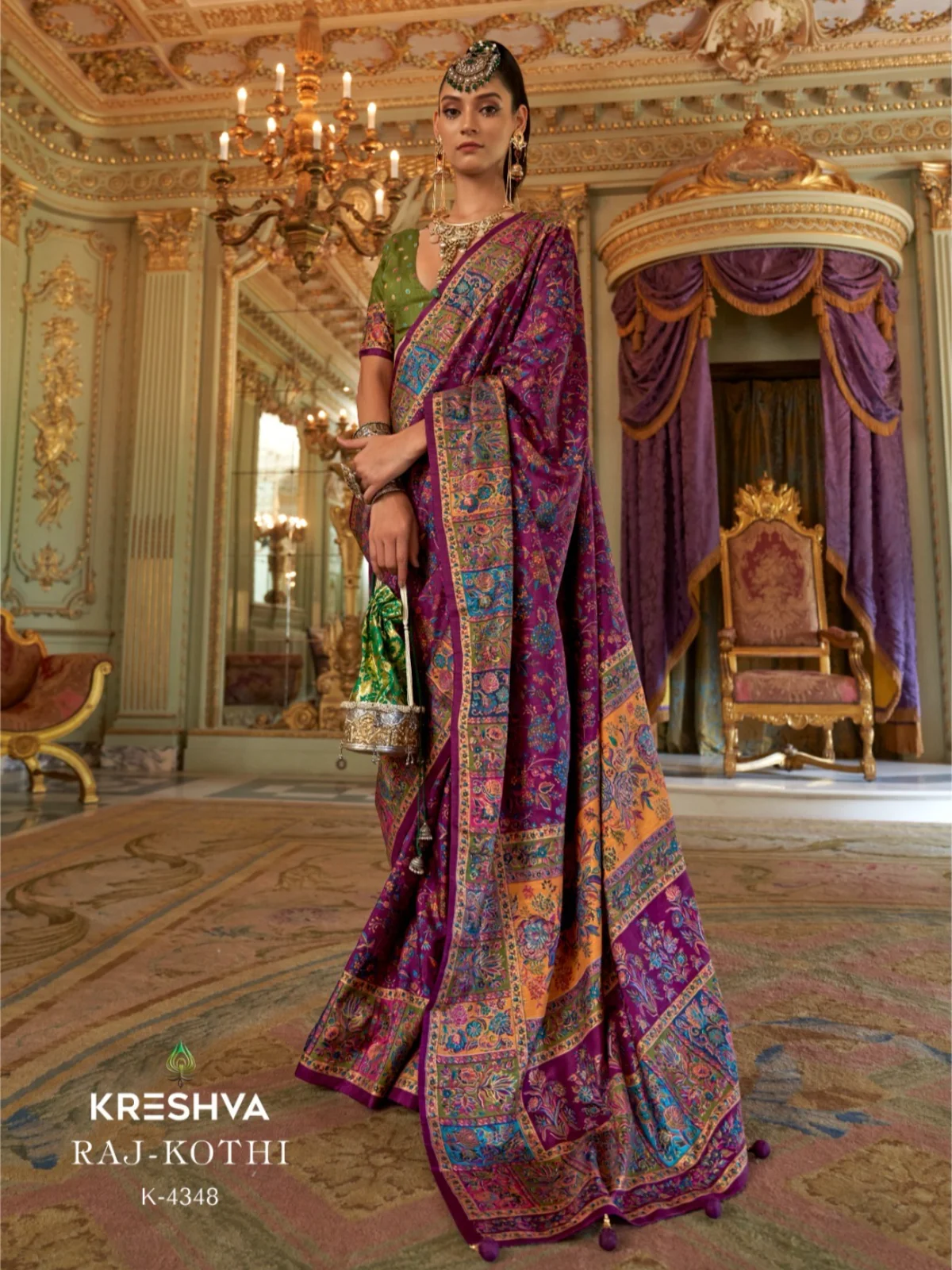 Kreshva Raj-Kothi Super 801 PV Silk Luxury Print Saree Collection