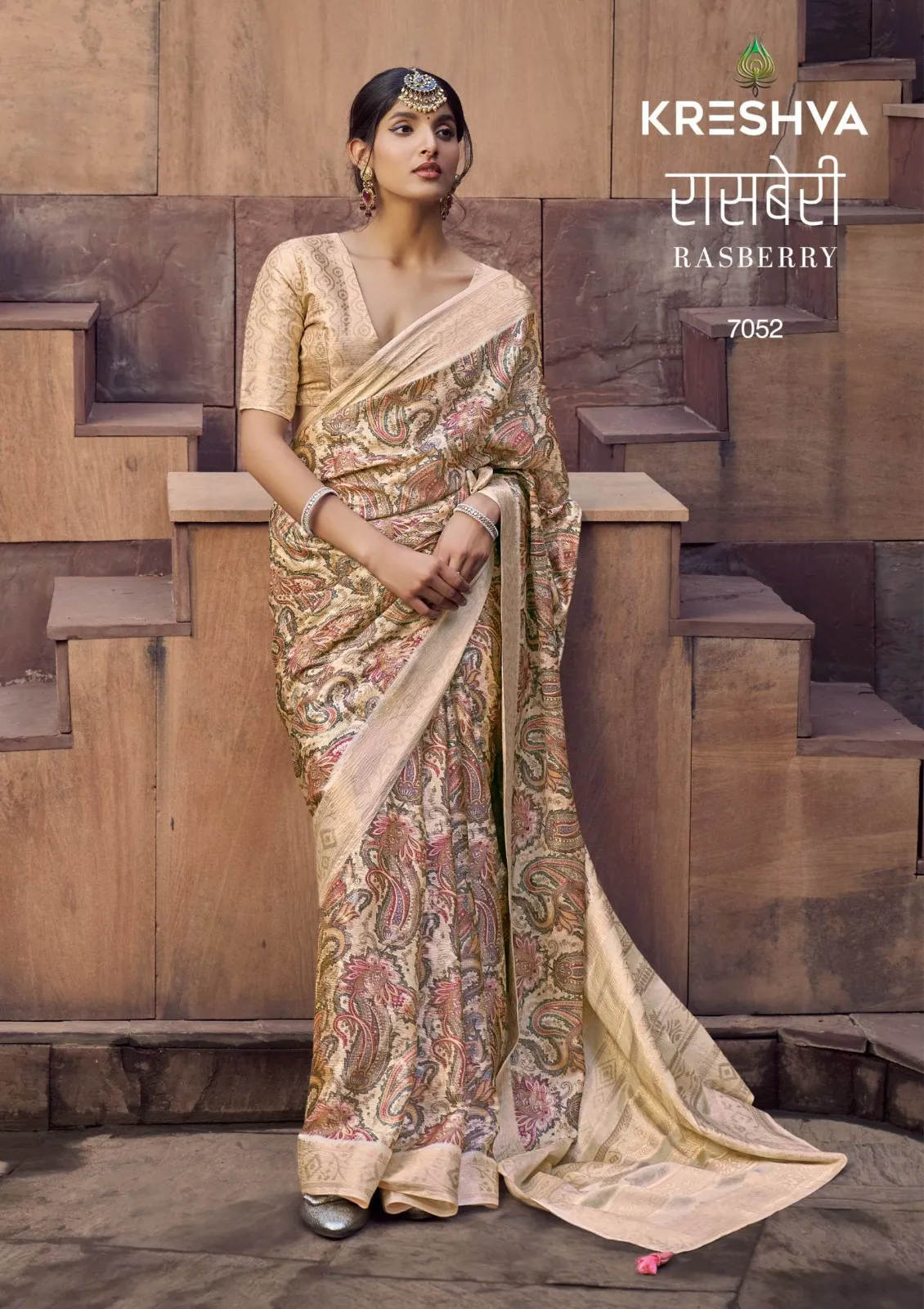 Kreshva Rasberry Crape Jacquard Border Casual Wear Saree
