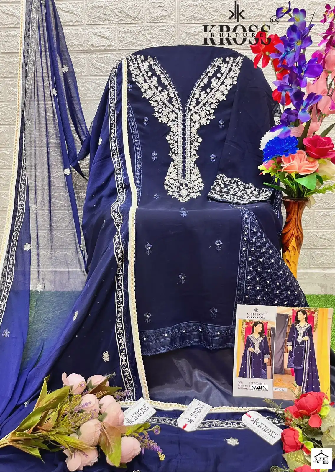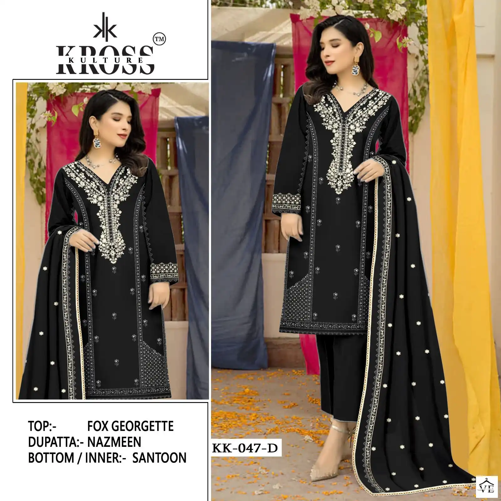 Kross Kk 47 Georgette Wholesale Designer Pakistani Salwar Suit Catalog 4 Pcs. We deal in Kurtis, Sarees, Dresses Materials, Leggings, and Designer Salwar Kameez.