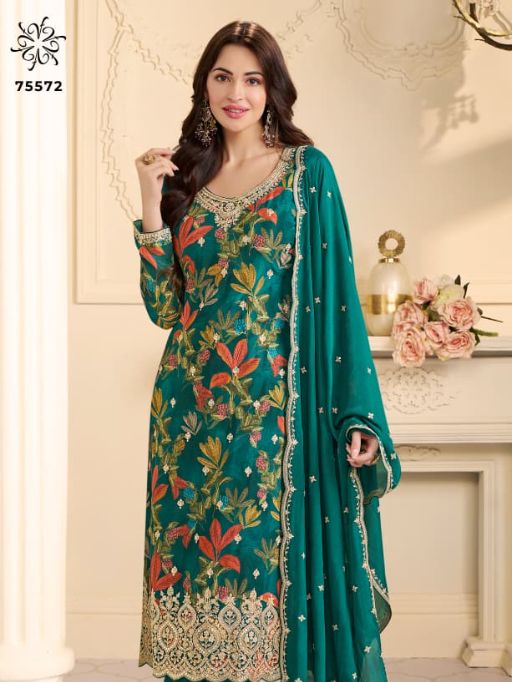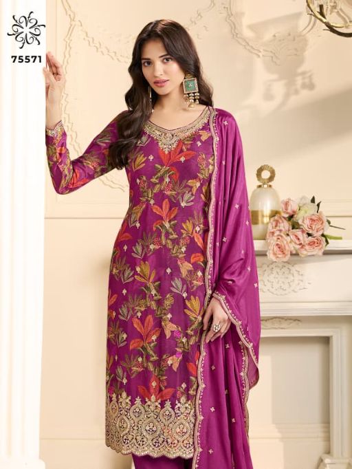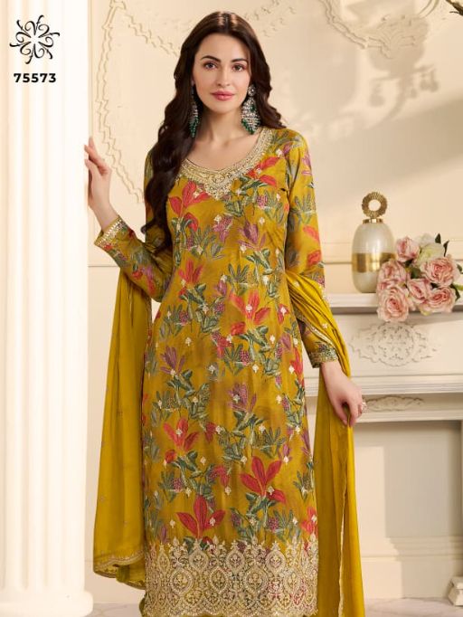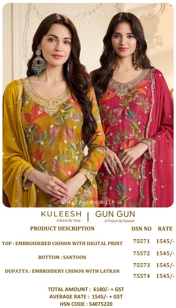 KULEESH GUN GUN Wholesale Embroidered Chinon Salwar Suit.
