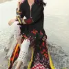 - Fabric: Pure cotton print with exclusive embroidery, featuring four patches. This suggests that the top is made of high-quality cotton fabric with intricate embroidery work, and it includes four patches, adding to its design and appeal.