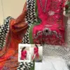 - Fabric: Cotton pure heavy lawn with heavy embroidery patch. This implies that the bottom part of the ensemble is made of heavy cotton lawn fabric with intricate embroidery, enhancing its visual appeal.