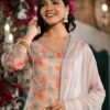 Chanderi Silk Print Suit With V Neck Work Matching Chiffon Embroidery |