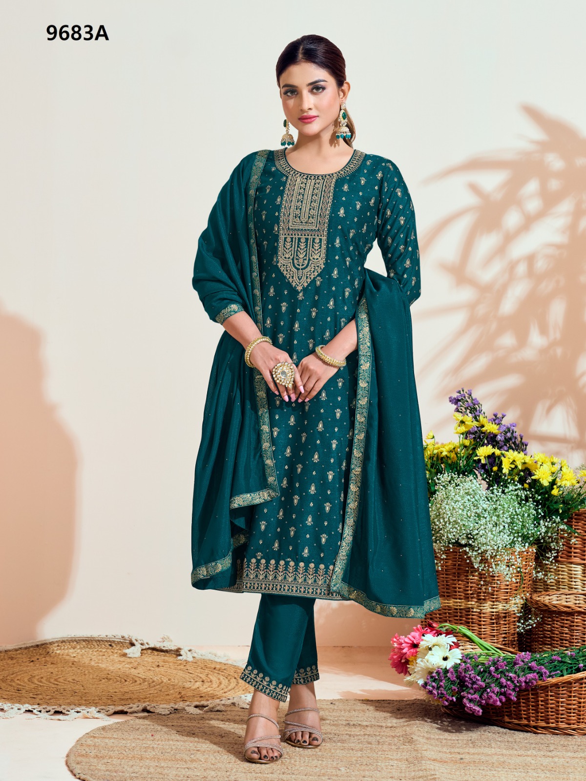 Label Khoj 9683A & 9683B Vichitra Silk Wholesale Readymade Salwar Suit Catalog