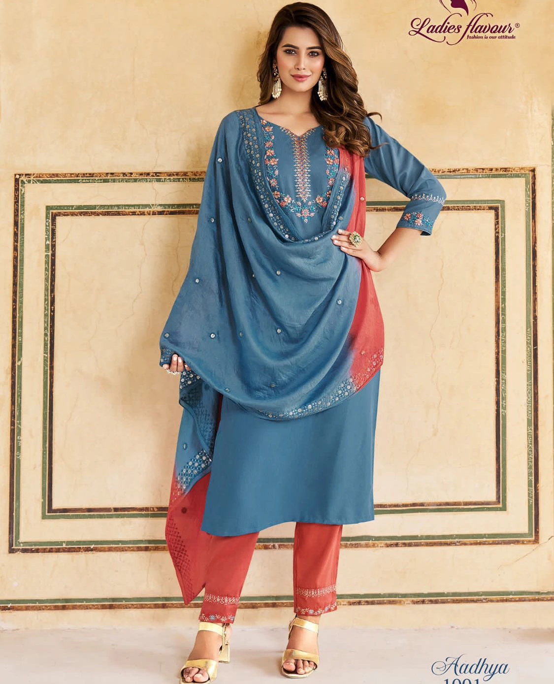 This heavy Chinon embroidered set collection offers a luxurious blend of style and sophistication at an affordable price of ₹895 per piece. Each set includes a top, bottom, and dupatta, ensuring a complete and coordinated outfit. Available in sizes M, L, XL, XXL, and 3XL, these sets provide excellent value and are perfect for various special occasions. Sold as complete sets, they offer an elegant and stylish solution for any wardrobe.