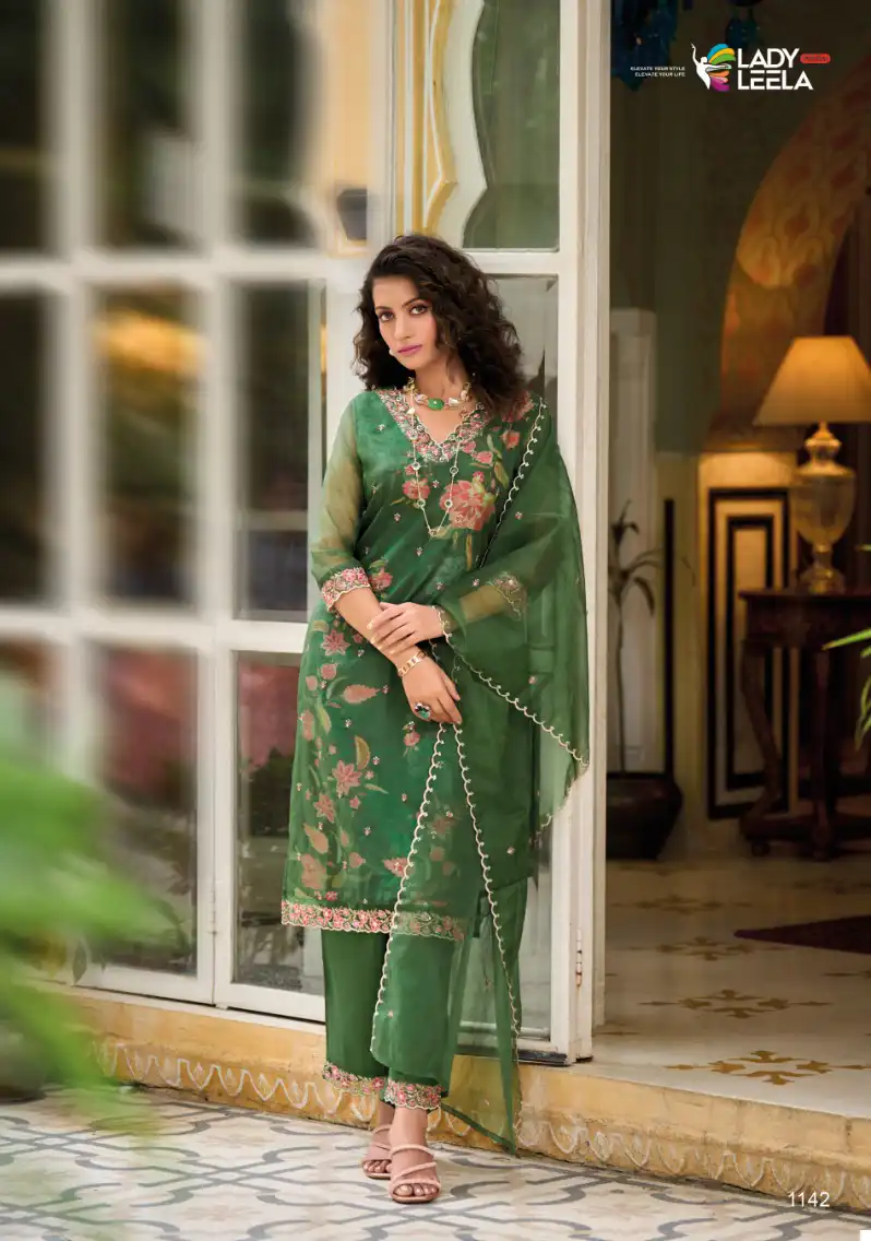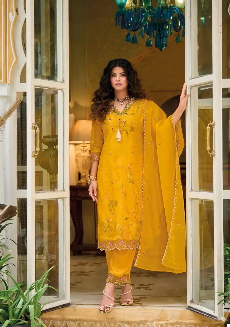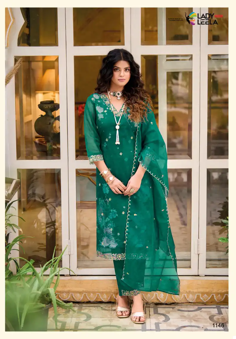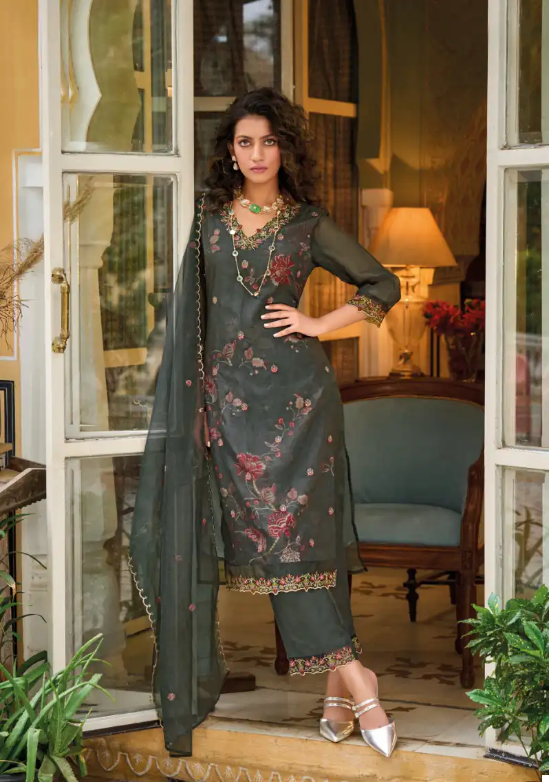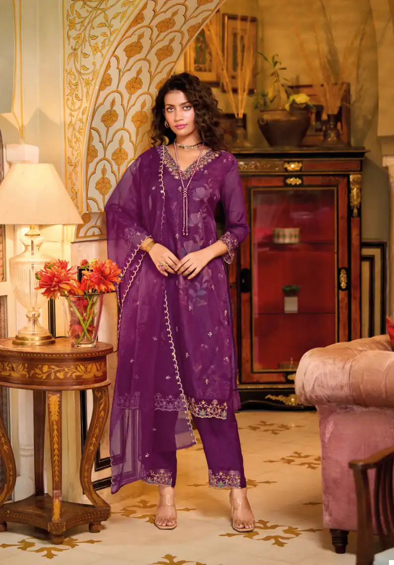 Organza Fabric: The kurtis in this ensemble are made from high-quality organza fabric, known for its sheer elegance and lightweight feel. Organza adds a touch of sophistication to your attire, making it perfect for special events.