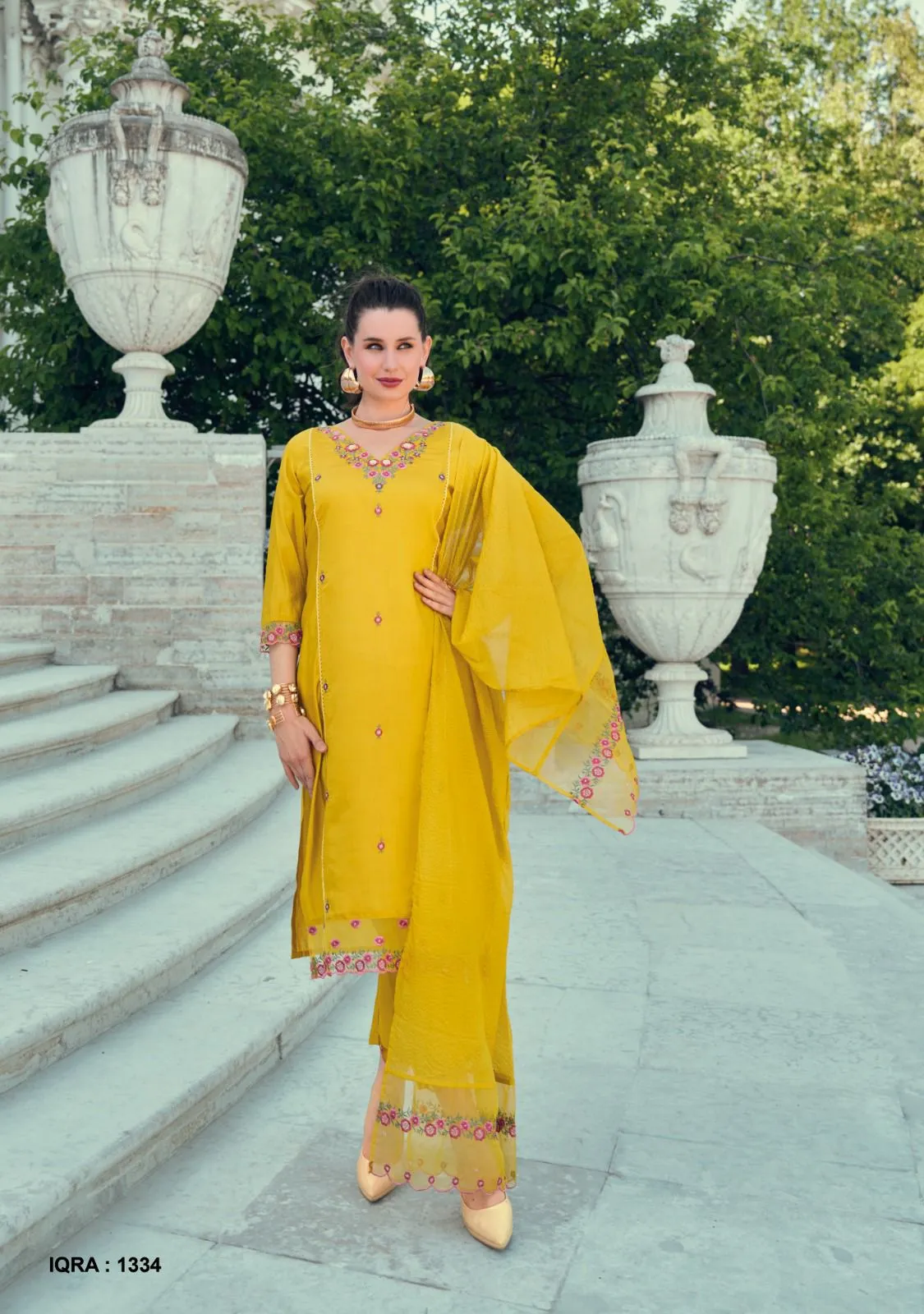 | Bottom | Pure Viscose Silk Pant With Bottom Work & Pocket |