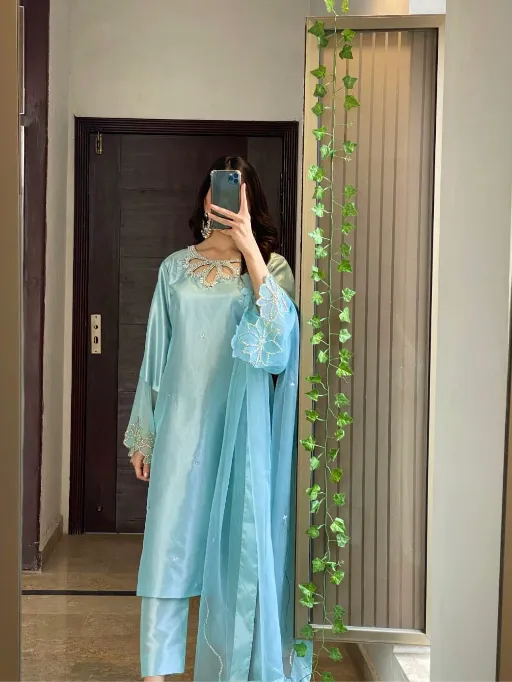 Dupatta: Organza Fabric with Sequence Embroidery (2.2 Mtr)