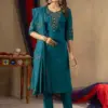 Bottom: Roman Silk | Work: Multi Embroidery Thread | Straight-Cut Pant for a Sleek Look | Length: 38”