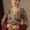 Top: Modal Print with Multi Embroidery Thread & Hand Work | Length: 46” | Sleeve Length: 16”