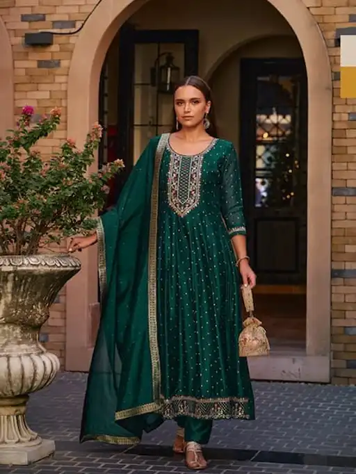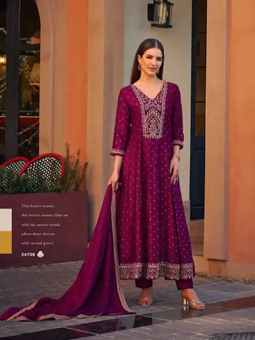Shop Lily and Lali Anarkali-2 with foil vichitra silk, handwork & Swarovski dupatta. Premium ethnic suits at wholesale price – Vardan Ethnic. (145 characters)