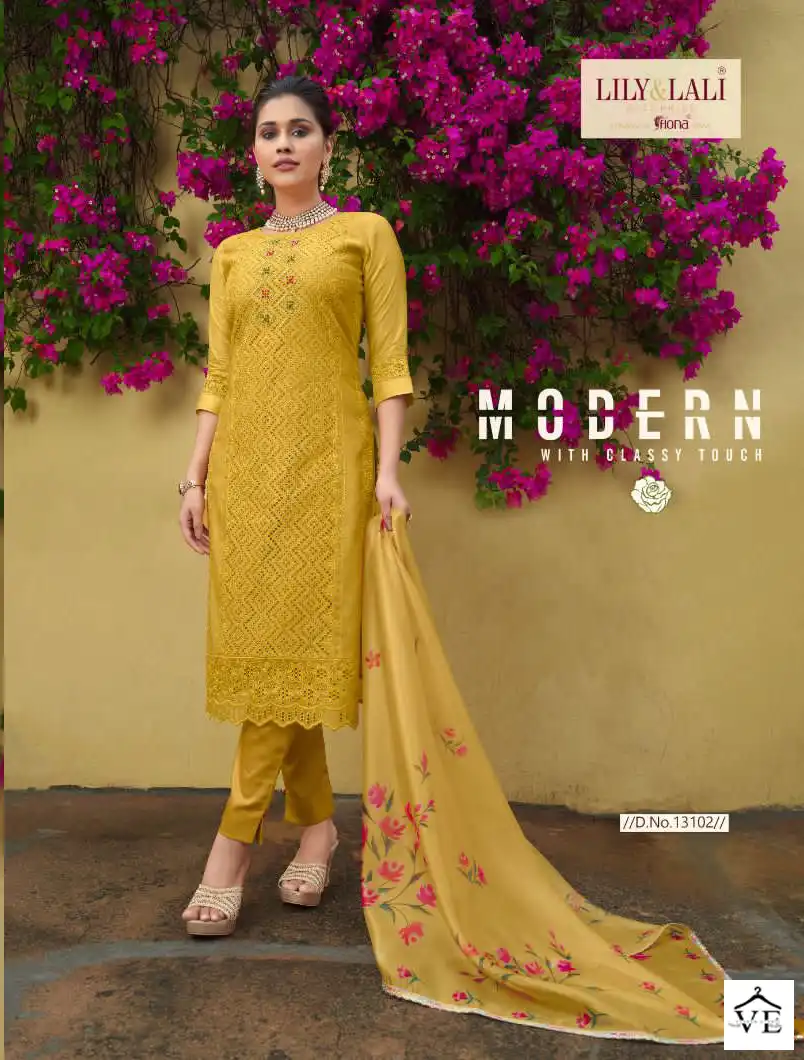 Lily And Lali Chikenkari Silk Wholesale Readymade Salwar Suit Catalog 6 Pcs. We deal in Kurtis, Sarees, Dresses Materials, Leggings, and Designer Salwar Kameez.