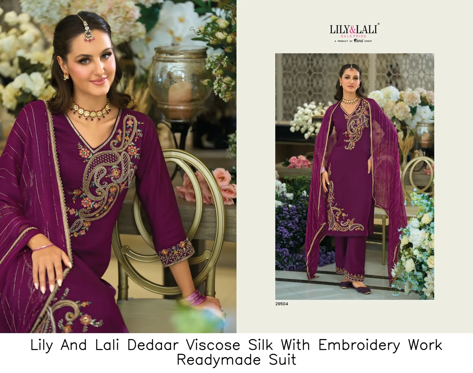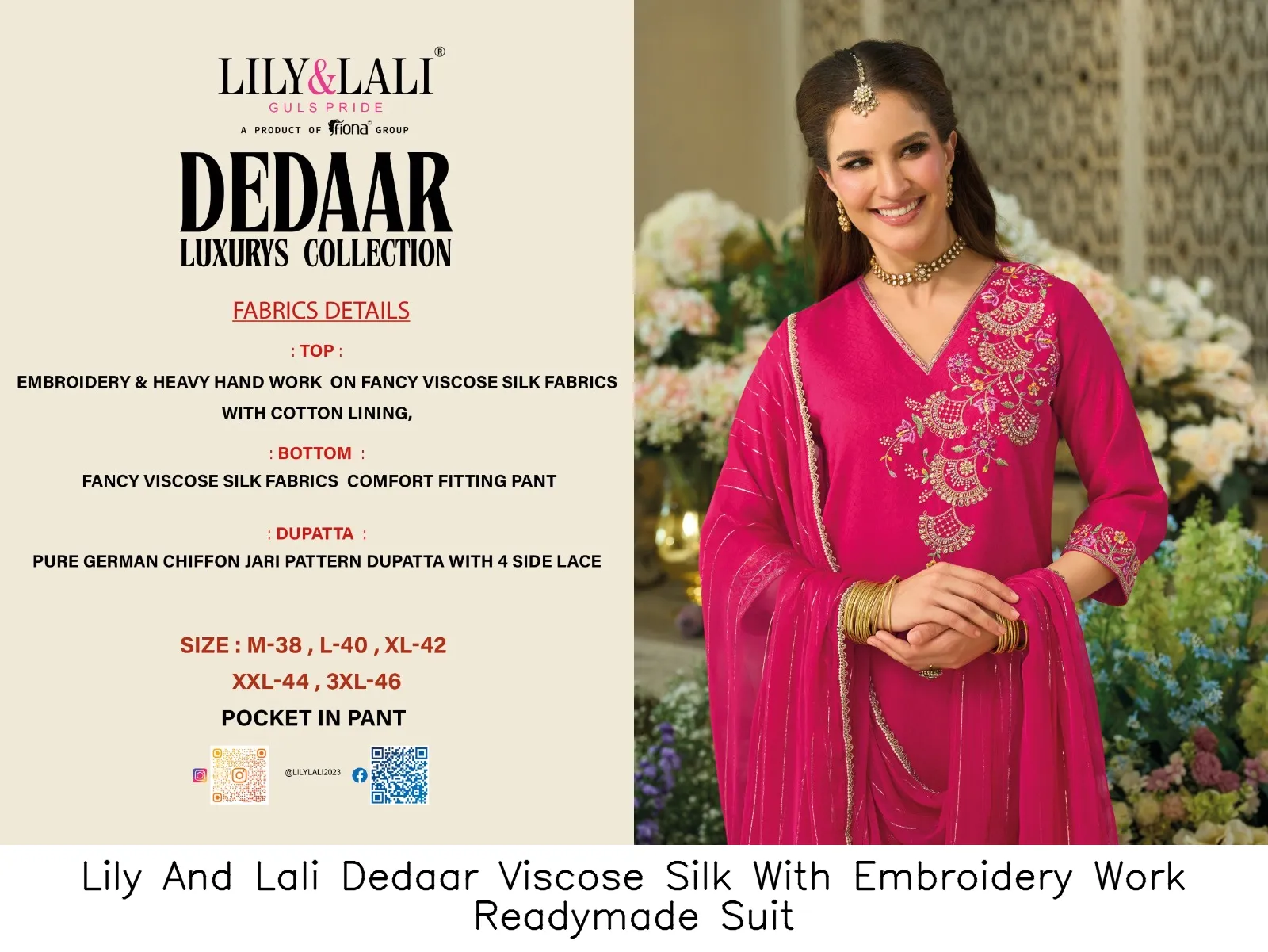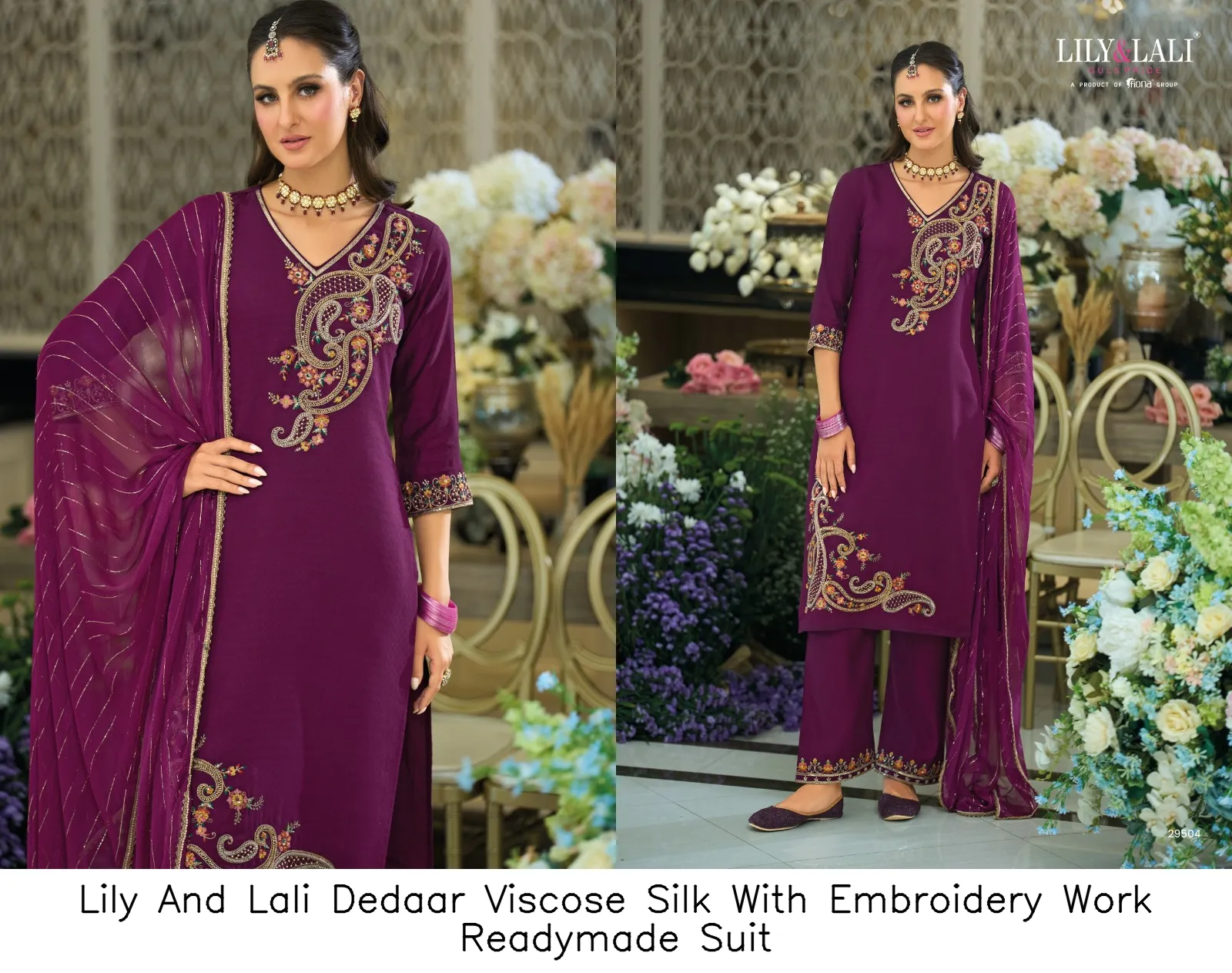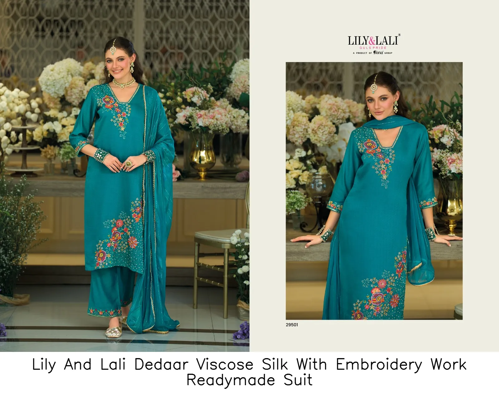 Lily And Lali Dedaar Viscose Silk With Embroidery Work Readymade Suit