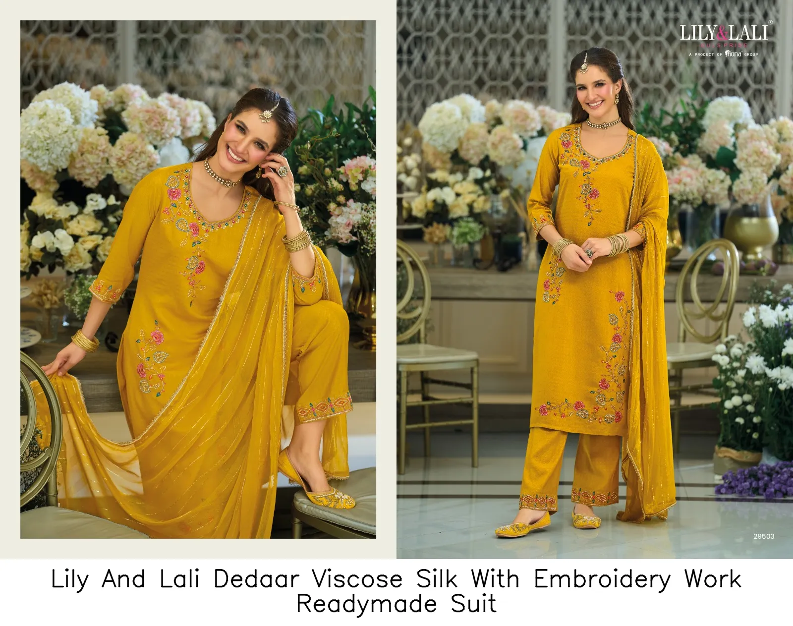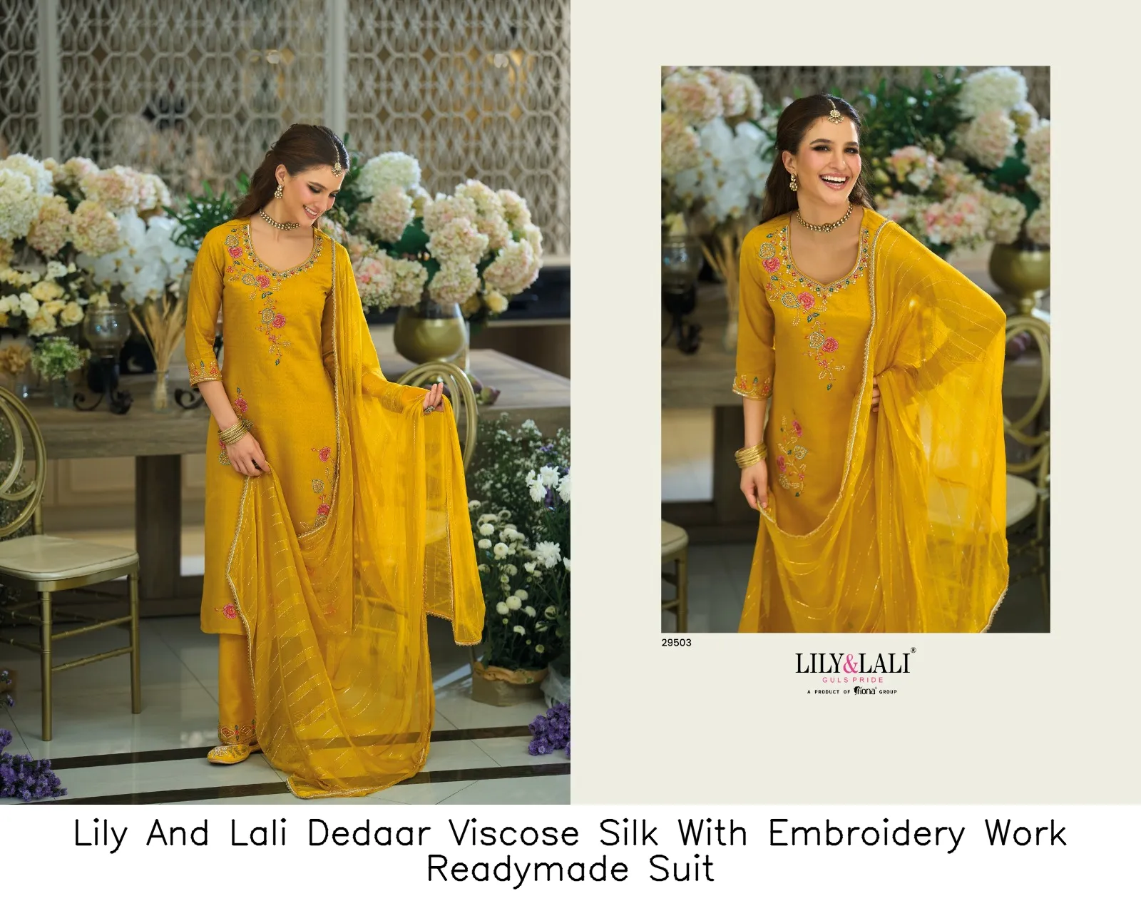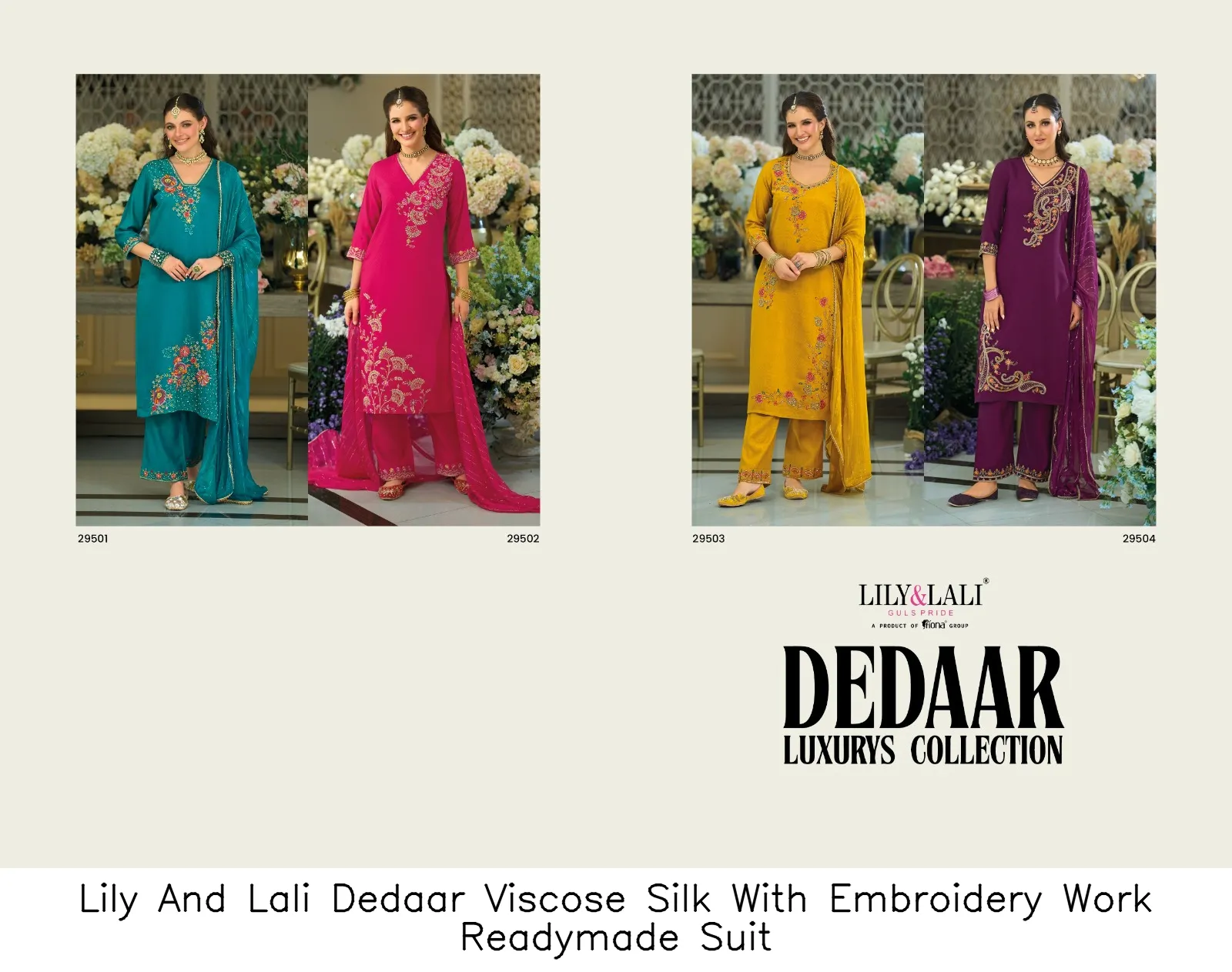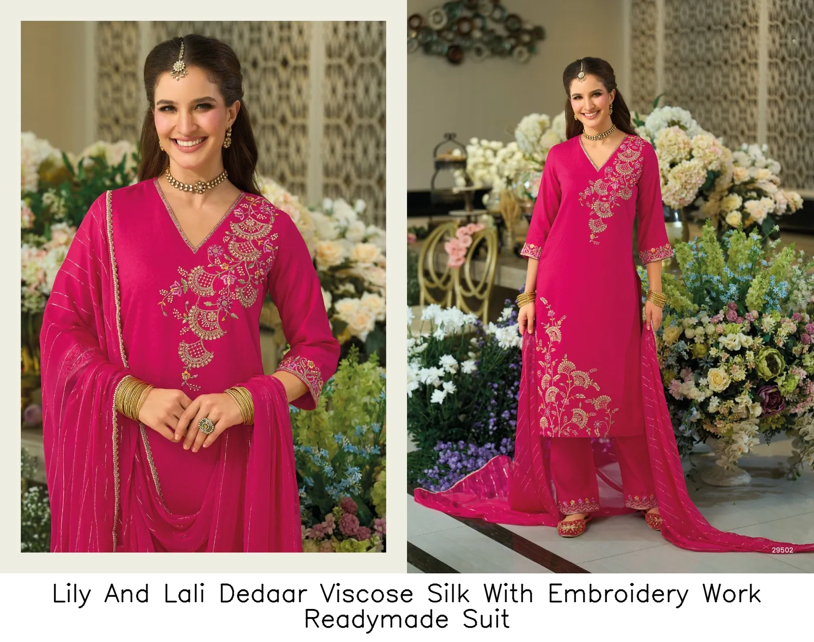 Lily And Lali Dedaar Viscose Silk With Embroidery Work Readymade Suit