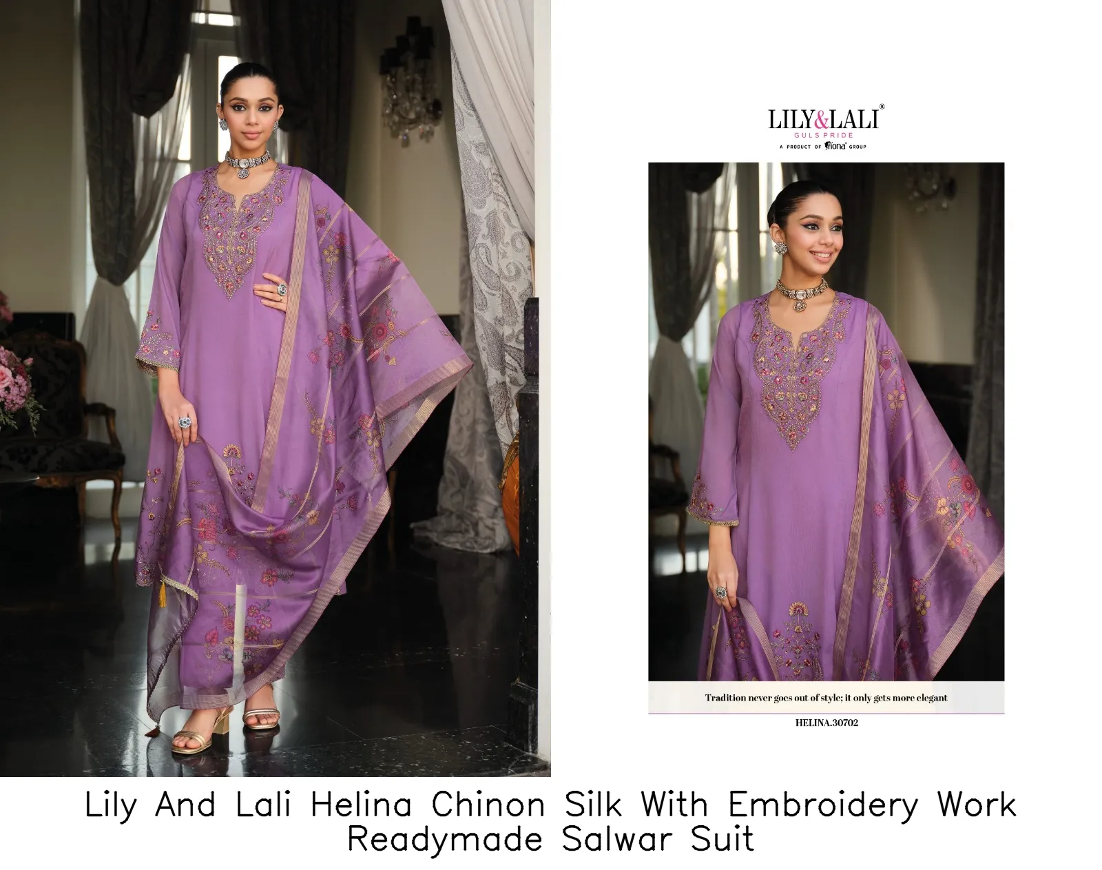 Lily And Lali Helina Chinon Silk With Embroidery Work Readymade Salwar Suit
