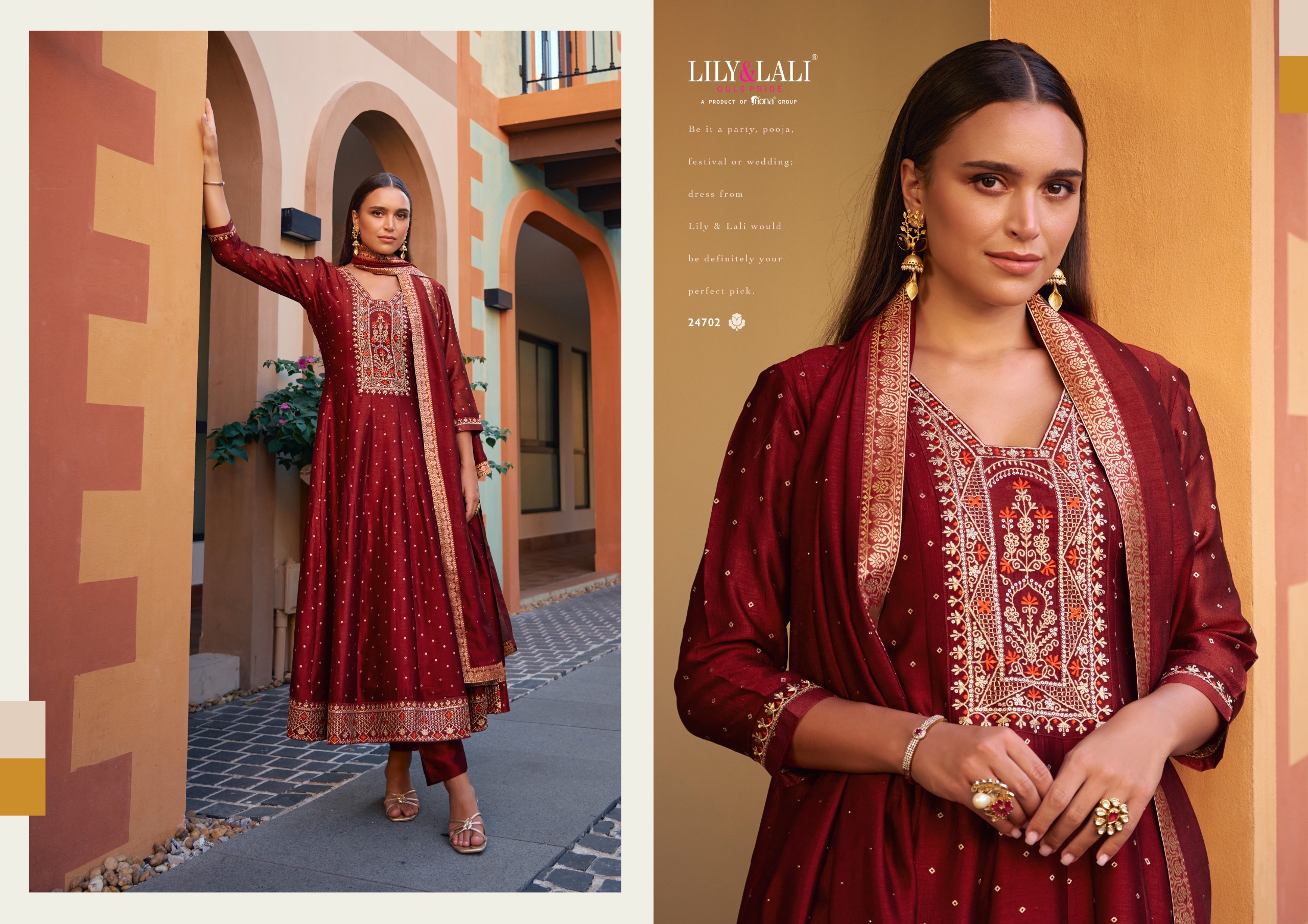 ✨ LILY & LALI®️ proudly presents the ANARKALI — an exclusive premium collection for 2025 that exudes sophistication and grace. This gorgeous ensemble features an Anarkali-style dress crafted from Foil Vichitra Silk, known for its elegant sheen and luxurious texture. The dress is adorned with intricate embroidery and handwork, showcasing traditional craftsmanship with a modern twist. With a 50-inch length and a voluminous 3-meter ghera, this outfit is designed to make you feel like royalty.