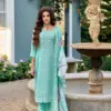 - Top: Crafted from high-quality cambric cotton, this top features beautiful bored white Schiffli work and intricate handwork, adding a touch of sophistication. The cotton lining ensures comfort throughout the day.