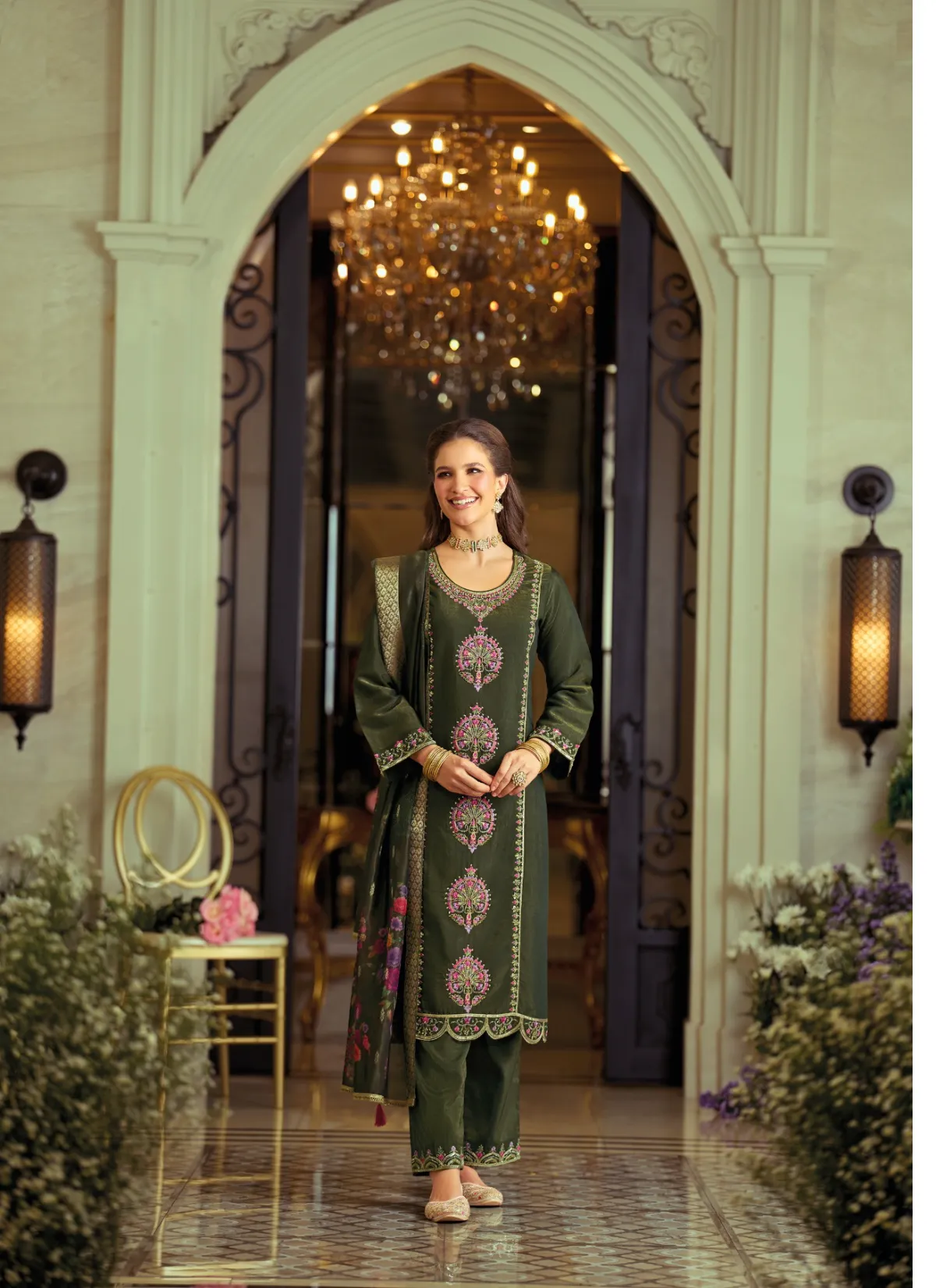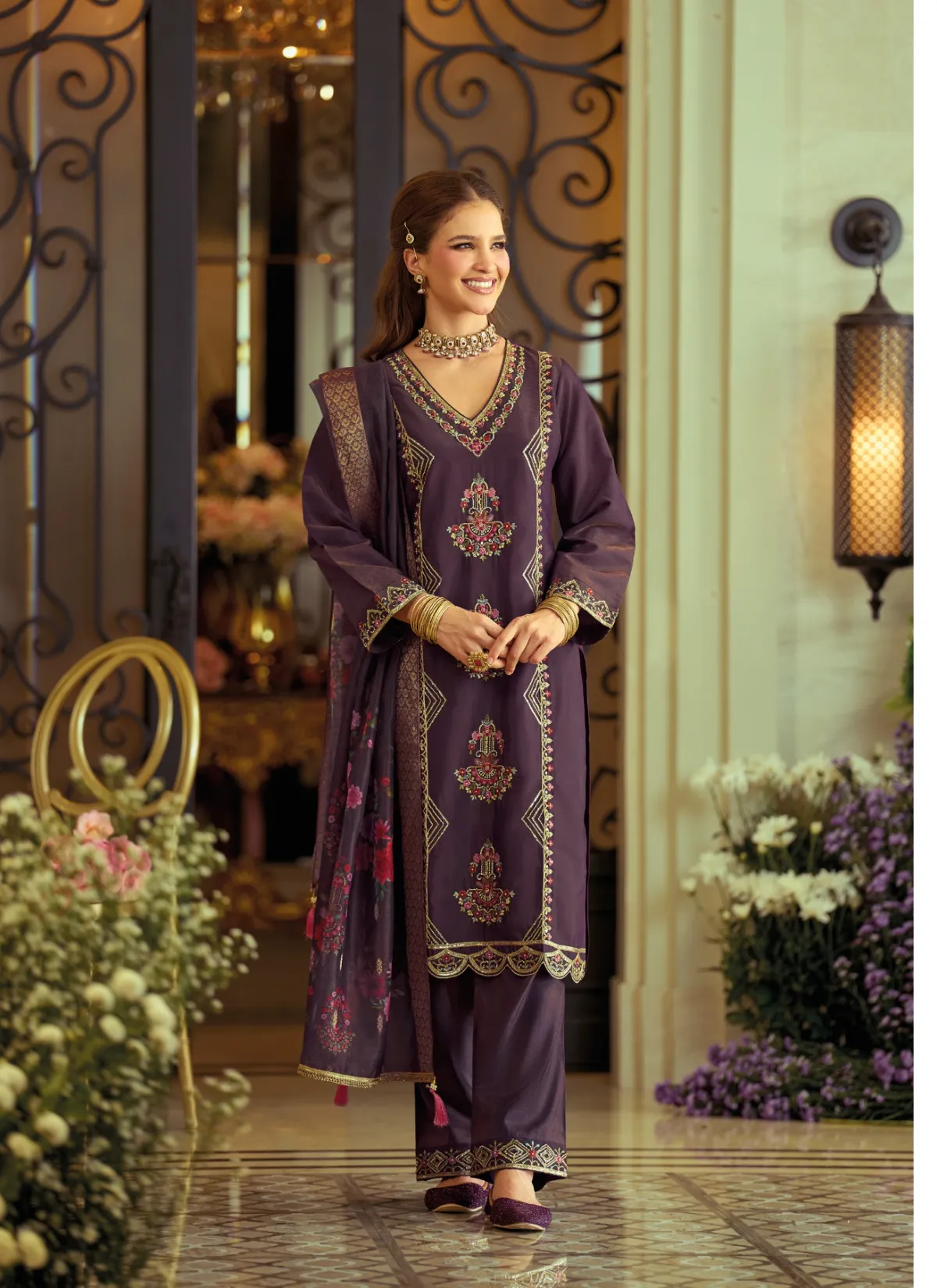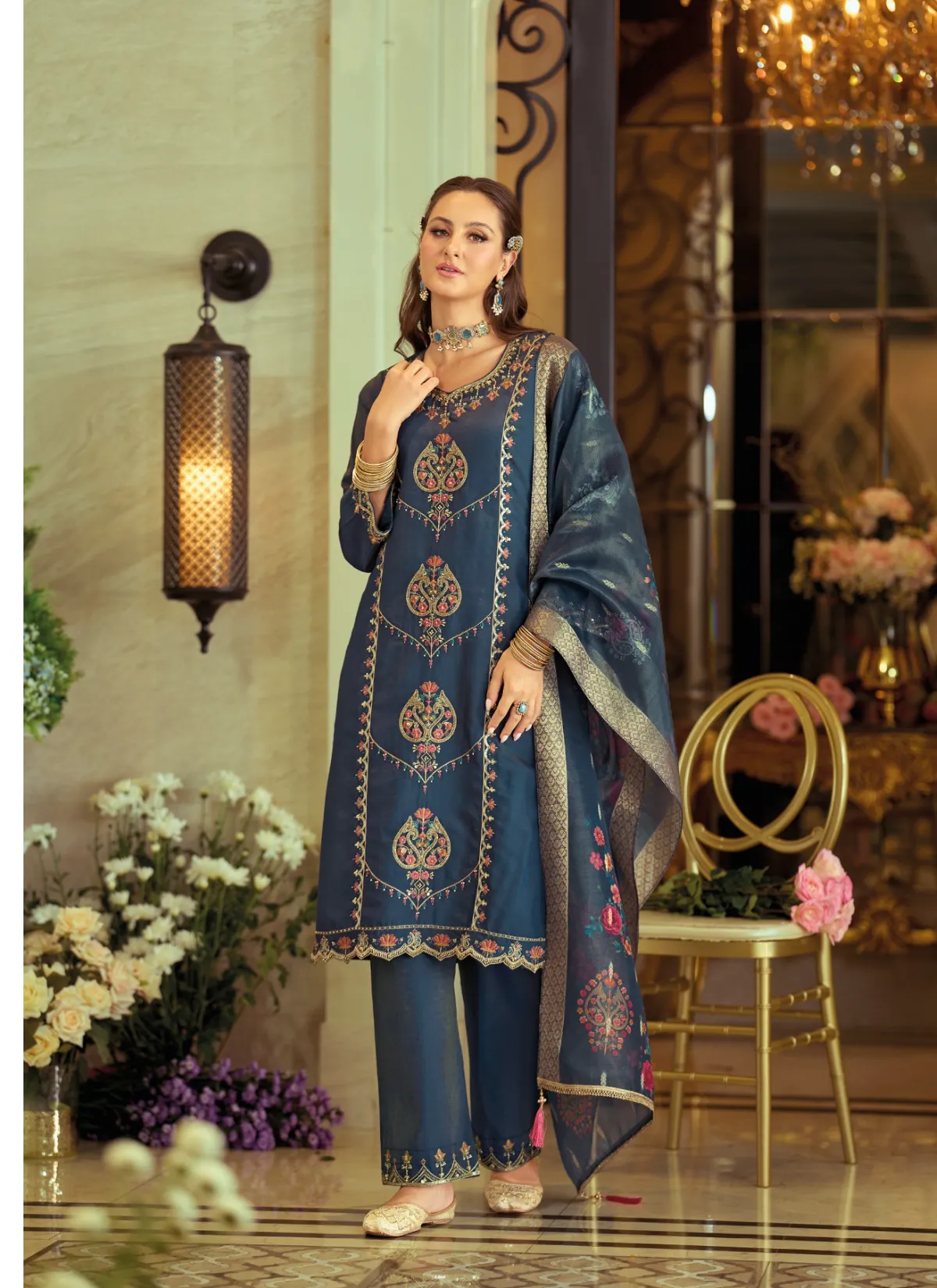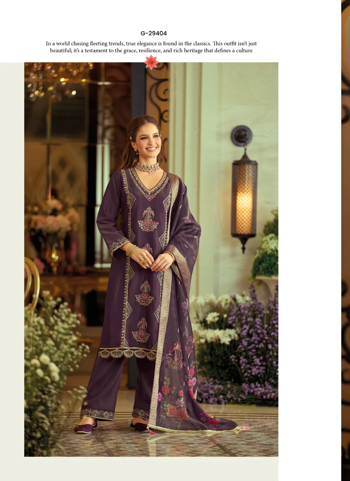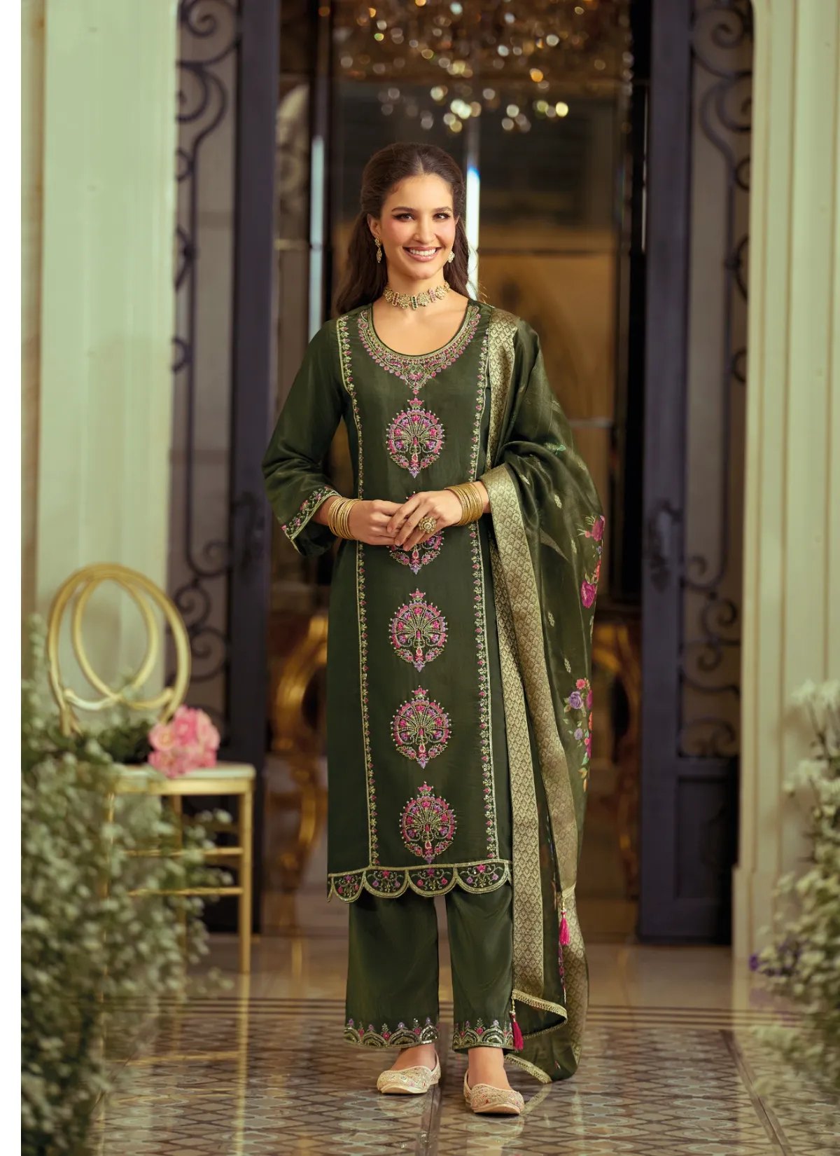 Step into timeless elegance with Gulabo by Lily & Lali, a refined ethnic ensemble that celebrates grace, comfort, and detailed craftsmanship. Designed under the Gul’s Pride line by Fiona Group, this suit set is perfect for women who appreciate understated luxury with a festive touch.