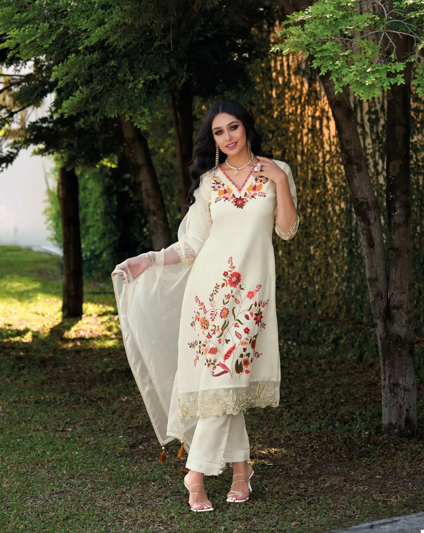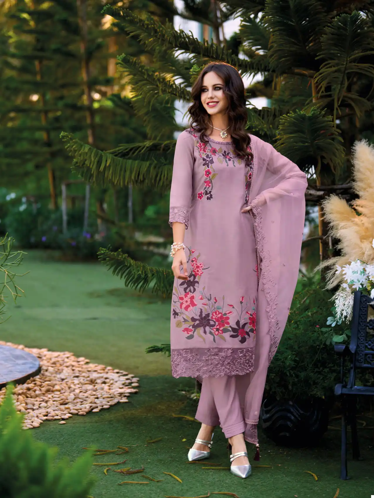 - Dupatta Fabric: Organza with embroidery, lace, and tassels
