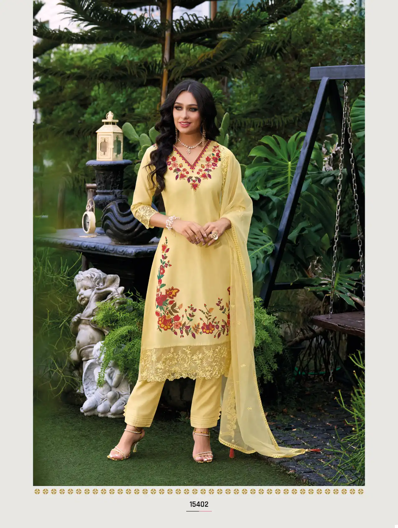 - Bottom Fabric: Viscose pant with stitching pattern