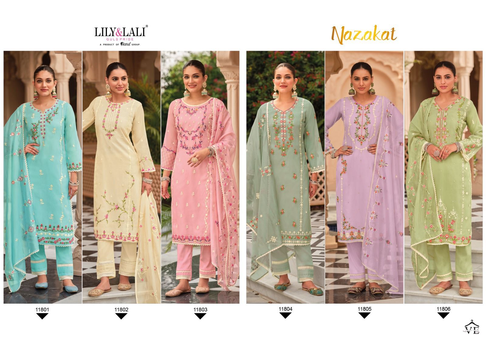 Lily & Lali Nazakat Pure Organza Wholesale Readymade Salwar Suit Catalog 6 Pcs. We deal in Kurtis, Sarees, Dresses Materials, Leggings, and Designer Salwar Kameez.