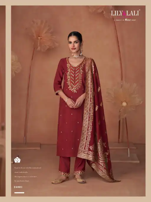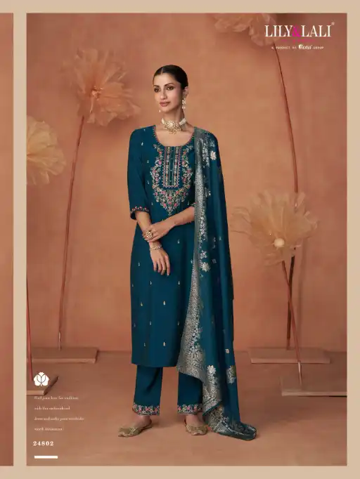 Buy Lily & Lali SHINY catalog of elegant embroidered viscose suits at wholesale rate.