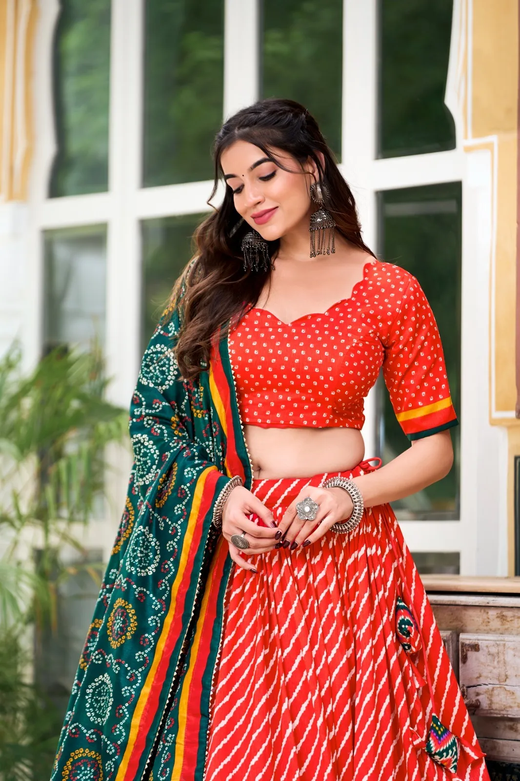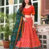 Lehenga Tussar Silk Leheriya With Patola Print Border Drawstring With Heavy Tassels and Zip With Micro Cotton Inner