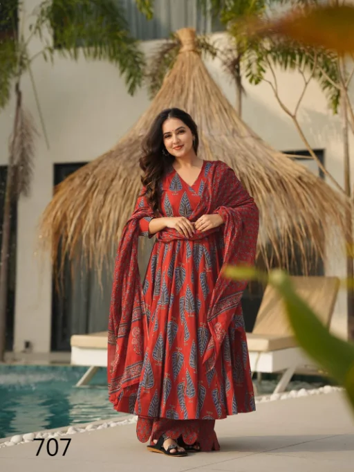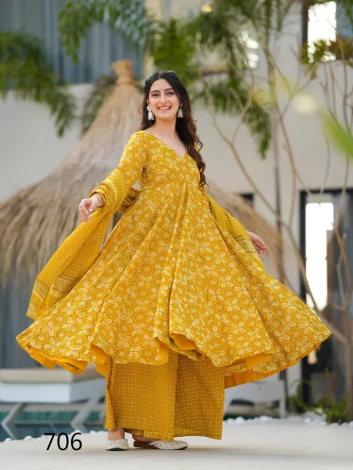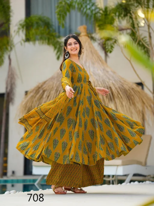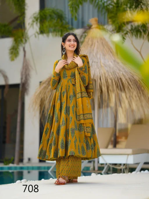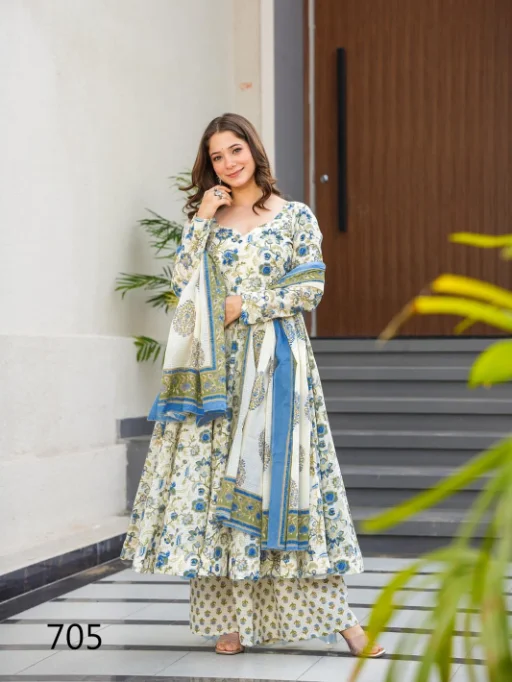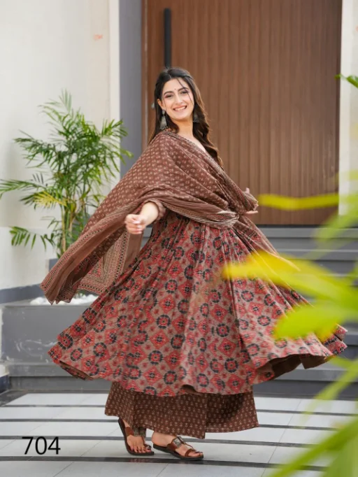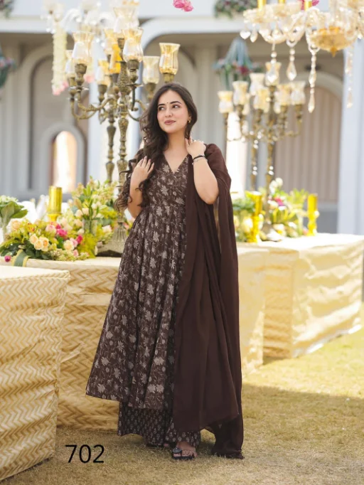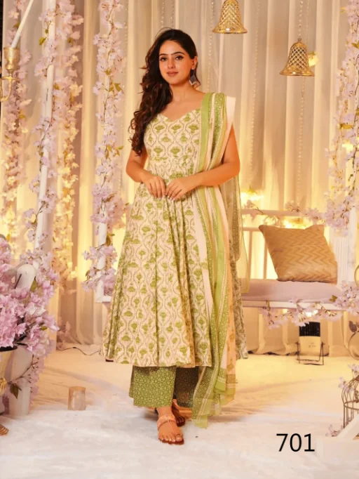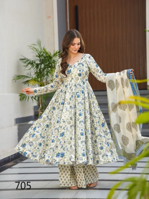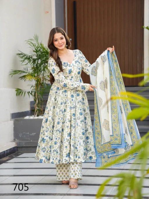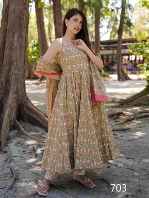 Lucaya Clora Vol-07 Maslin Anarkali Kurti Bottom Dupatta Set