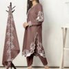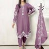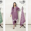 Elegant semi-formal suit set made from rich jam satin fabric for top and bottom with a graceful organza dupatta. Perfect for festive wear, gatherings, or light occasions.