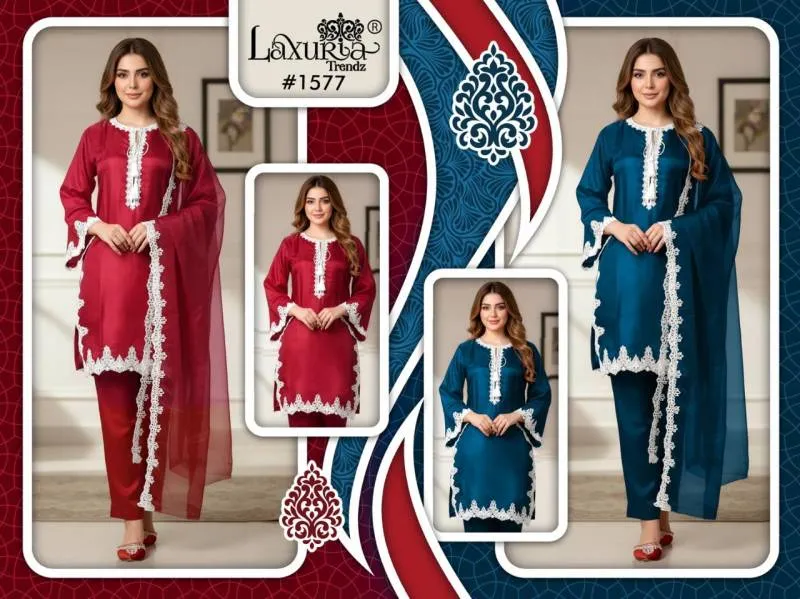 Product Name: Luxuria Trendz 1577 Satin Embroidery Pakistani Readymade Set