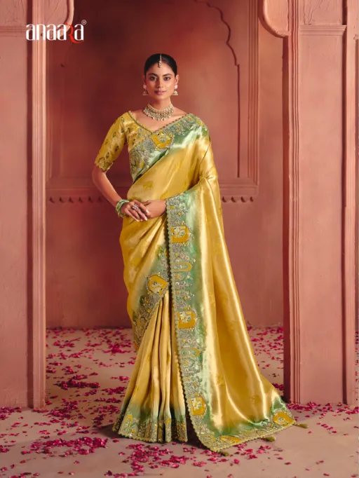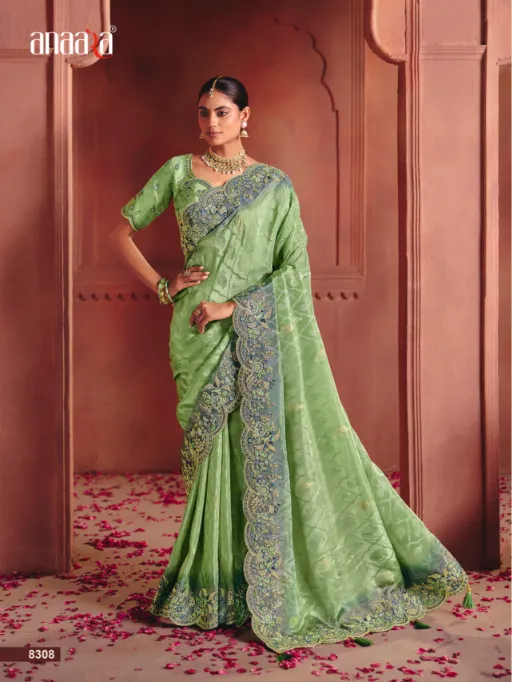 - Each saree in the Anaara 8300 Series is meticulously crafted to create a regal drape with a graceful fall, making it an ideal choice for weddings, festive celebrations, receptions, and elite party wear occasions. The richness of zari silk combined with ornate embroidery delivers a statement look that reflects power, elegance, and timeless beauty.