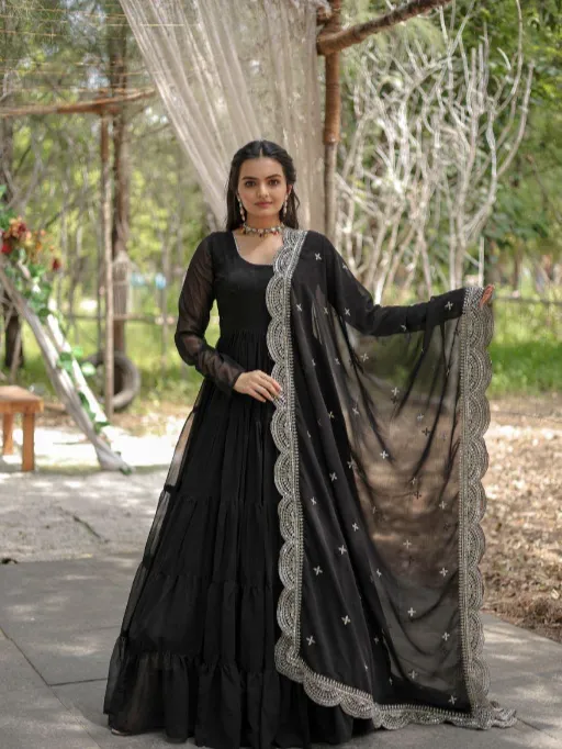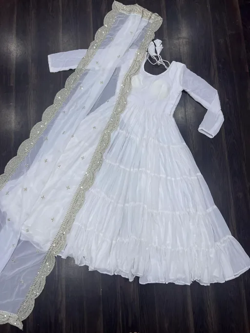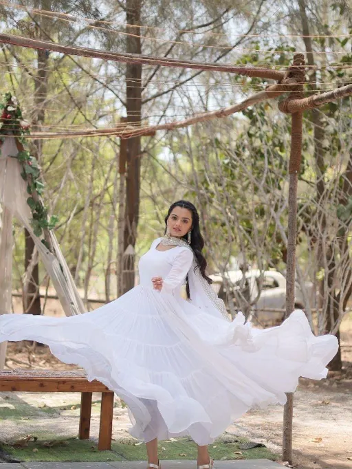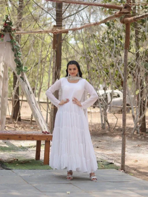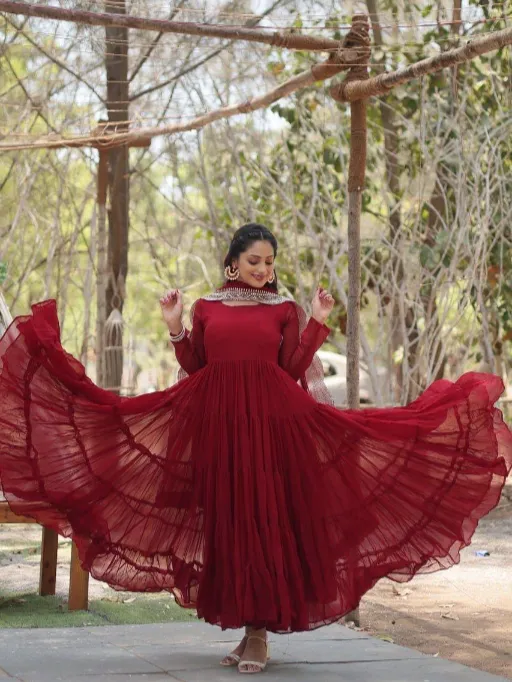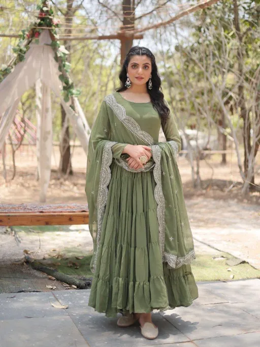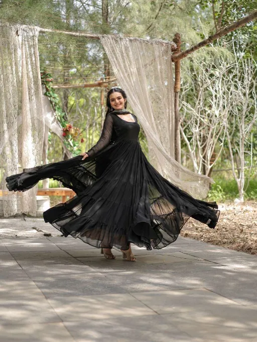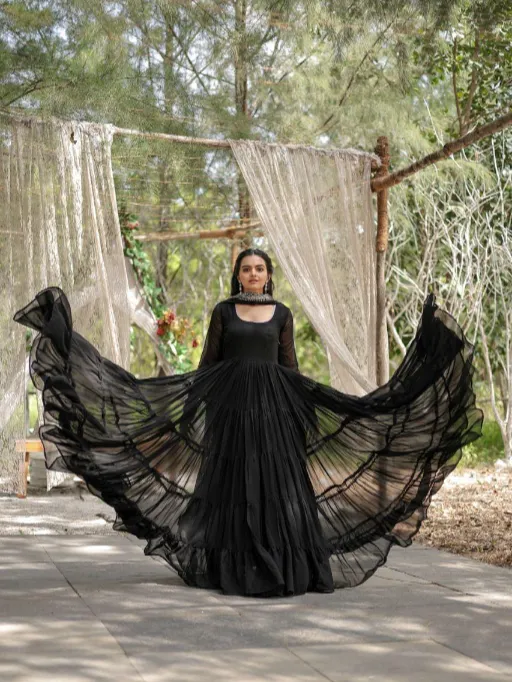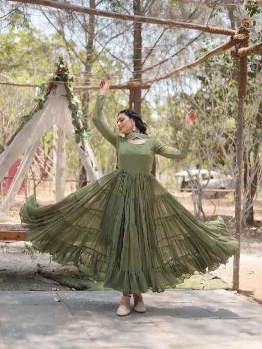 LW-9147 Readymade Faux Georgette Frill Gown Collection