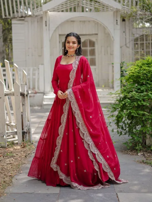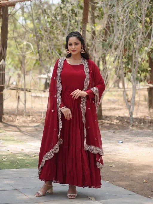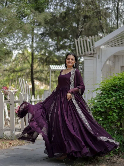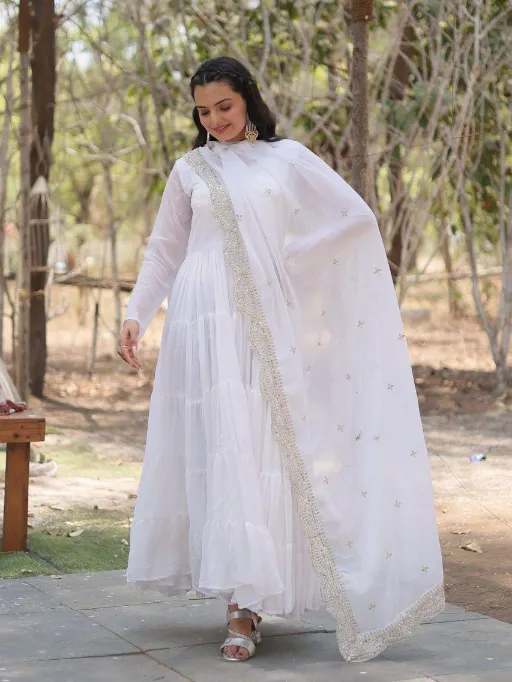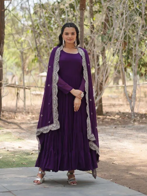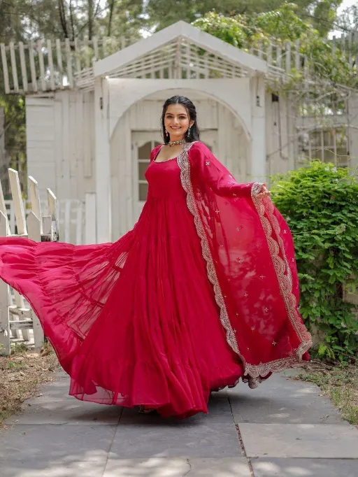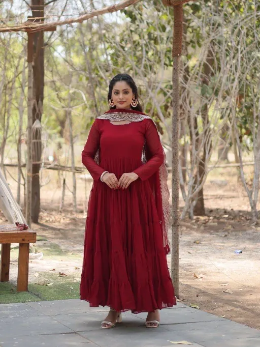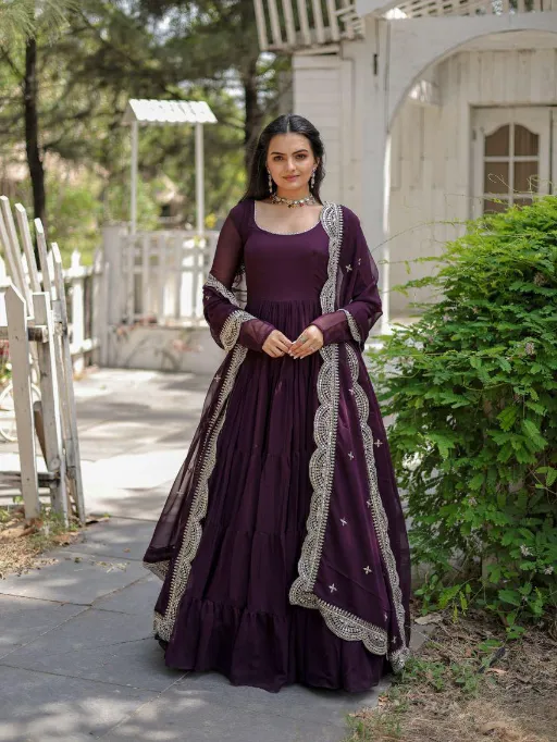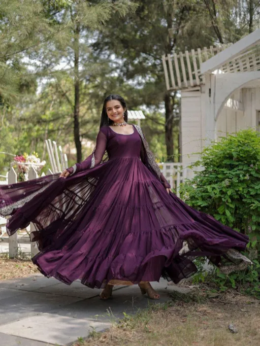 LW-9147 Readymade Faux Georgette Frill Gown Collection
