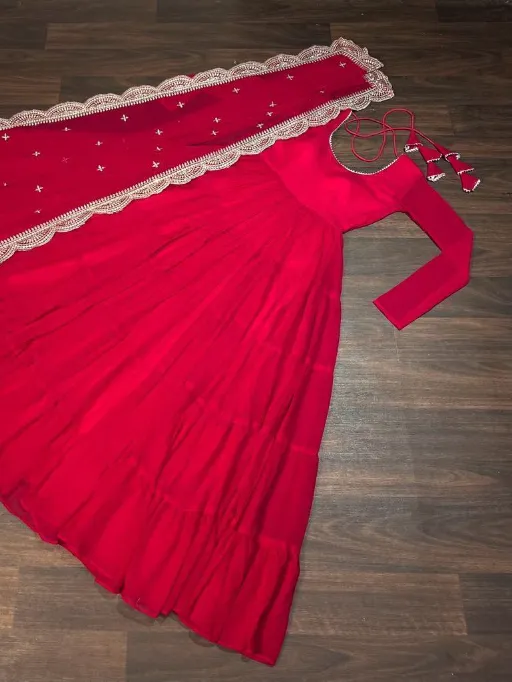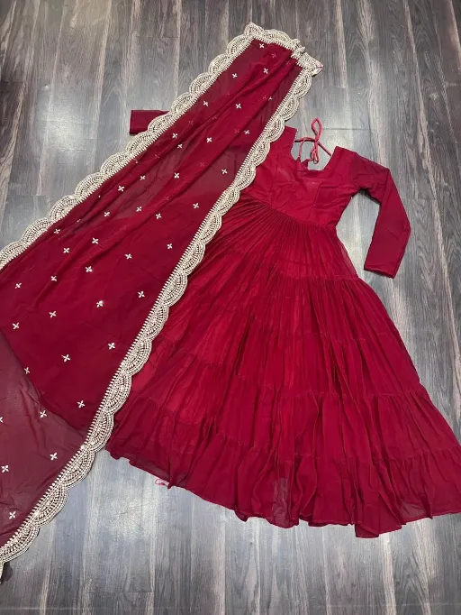 Premium Faux Georgette with 5-Layer Frill Stitching
