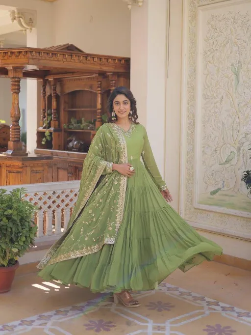 LW-9162 Readymade Embroidered Faux Georgette Gown Collection.