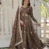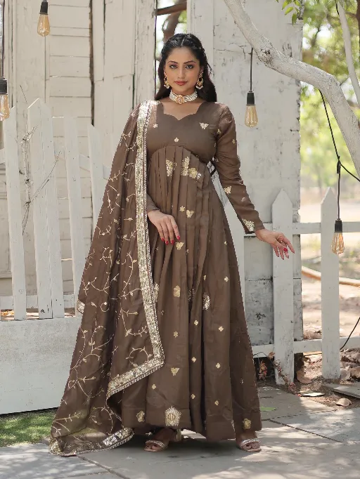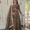 LW-9183 Wholesale Beige Vichitra Shimmer Sequins Gown Collection.