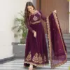 Fabric & Work: Faux Blooming Georgette with Zari Thread & Sequins Embroidery