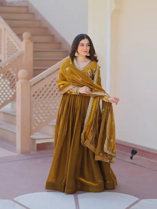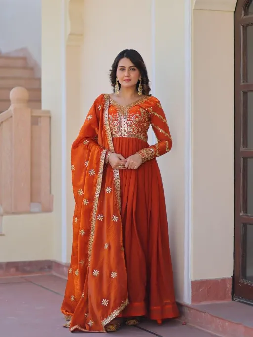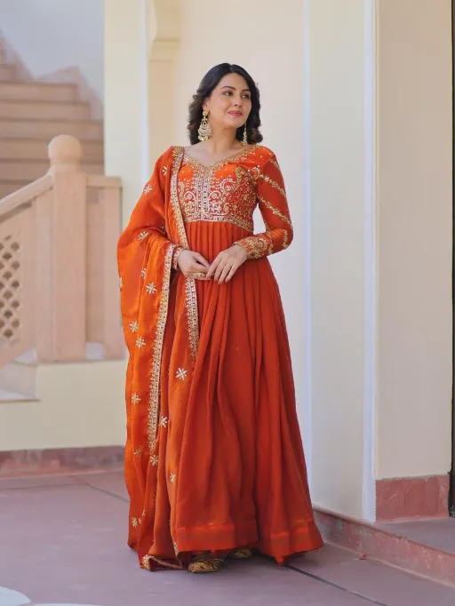 LW-9234 Readymade Fendy Embroidered Gown with Dupatta Collection.