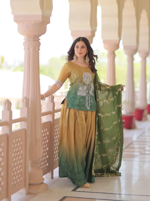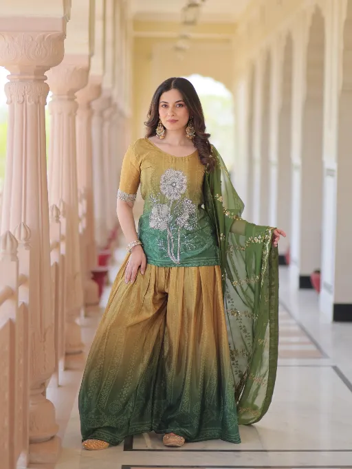 🔗 Explore More: Chinnon Printed Beads Embroidered Sharara Suit Collection